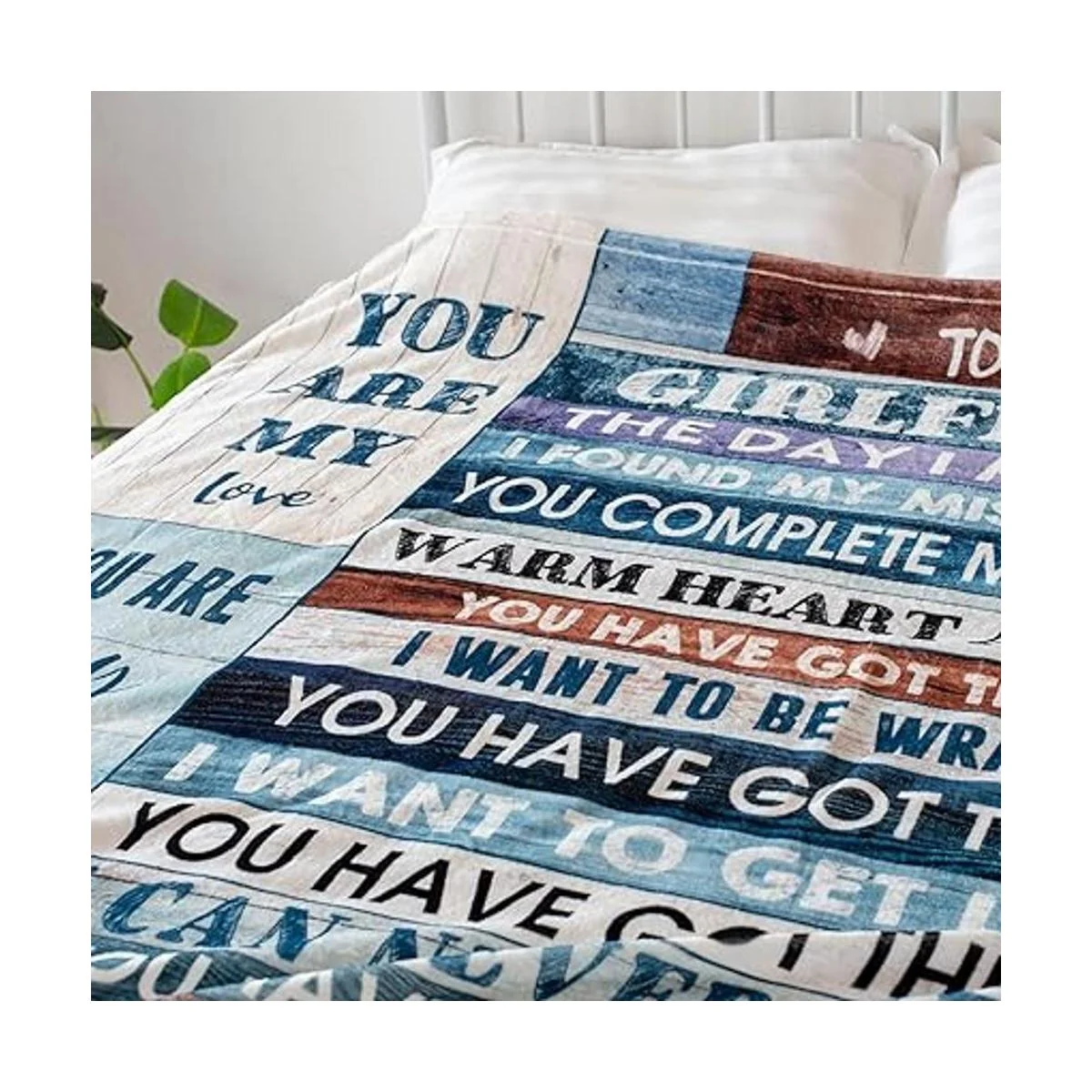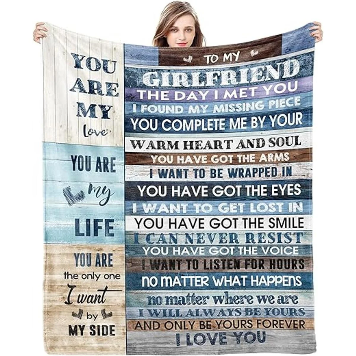 To My Girlfriend Gifts Manta para novia con texto en inglés I Love You Blessing Sweet Saying, regalos de cumpleaños para su aniversario, mantas suaves para cama, sofá y sofá de 80 x 60 pulgadas