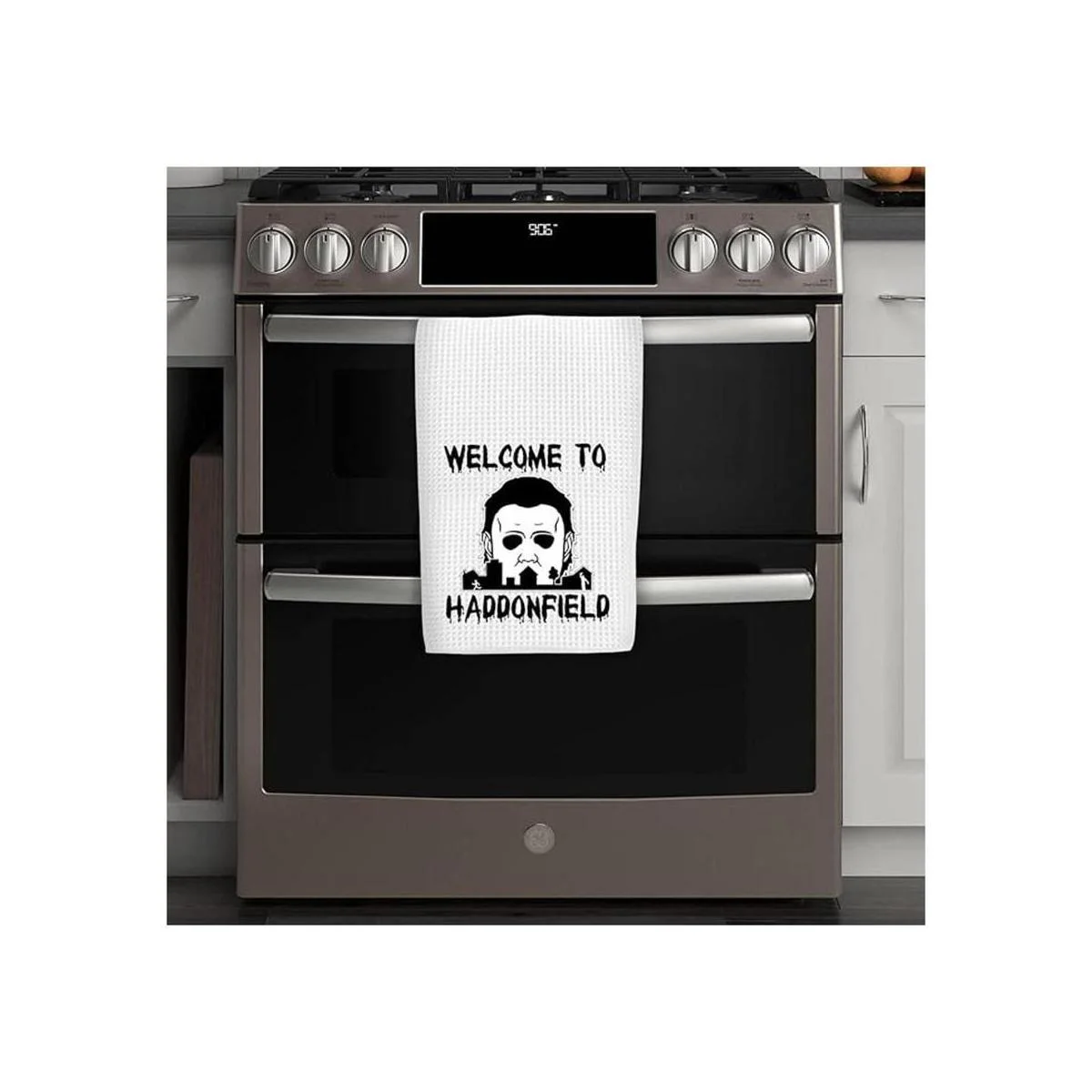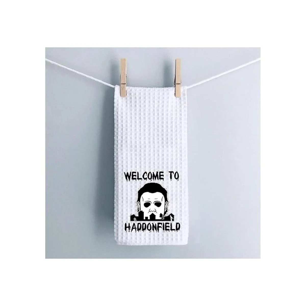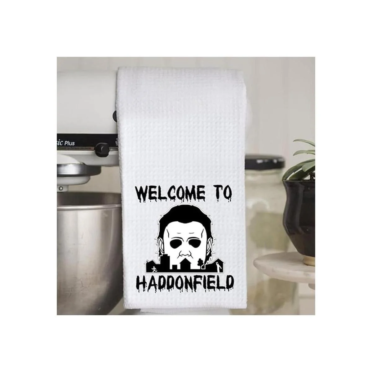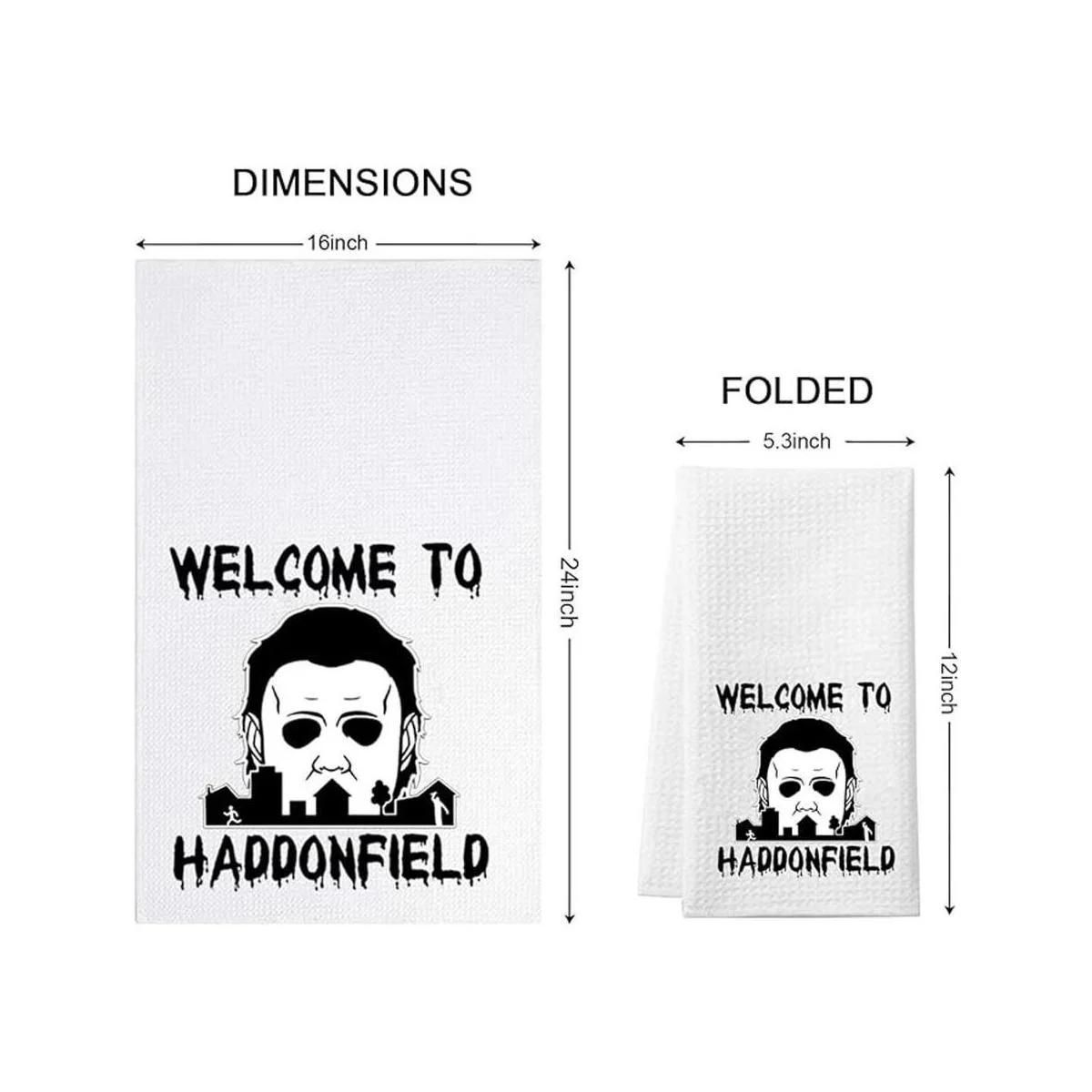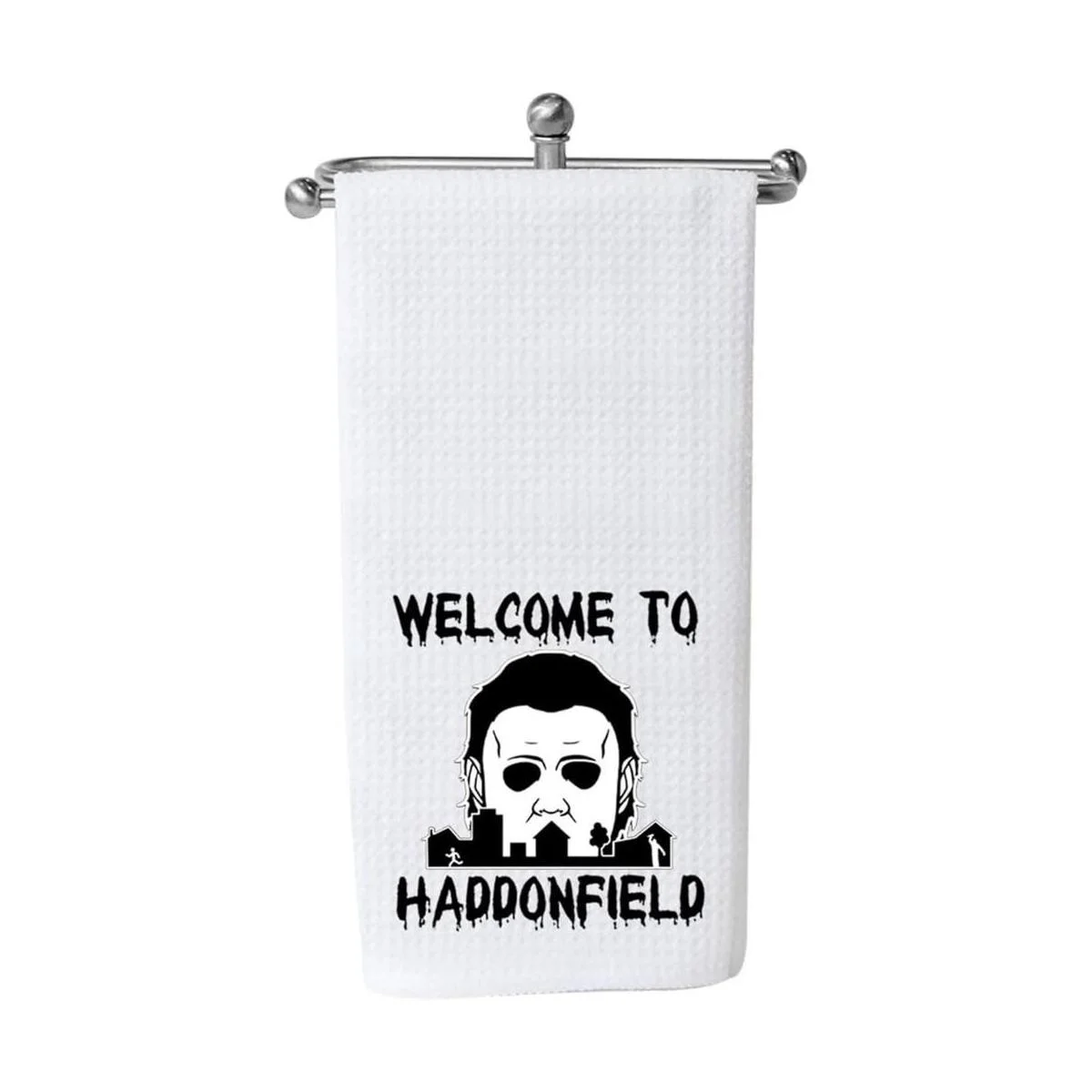 Toalla de cocina divertida de bienvenida a Haddonfield para Halloween, bonita decoración de inauguración de la casa Bienvenido a Haddonfield