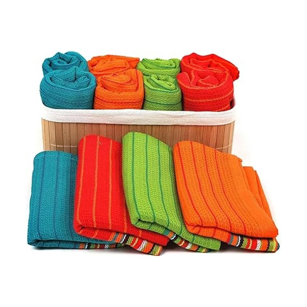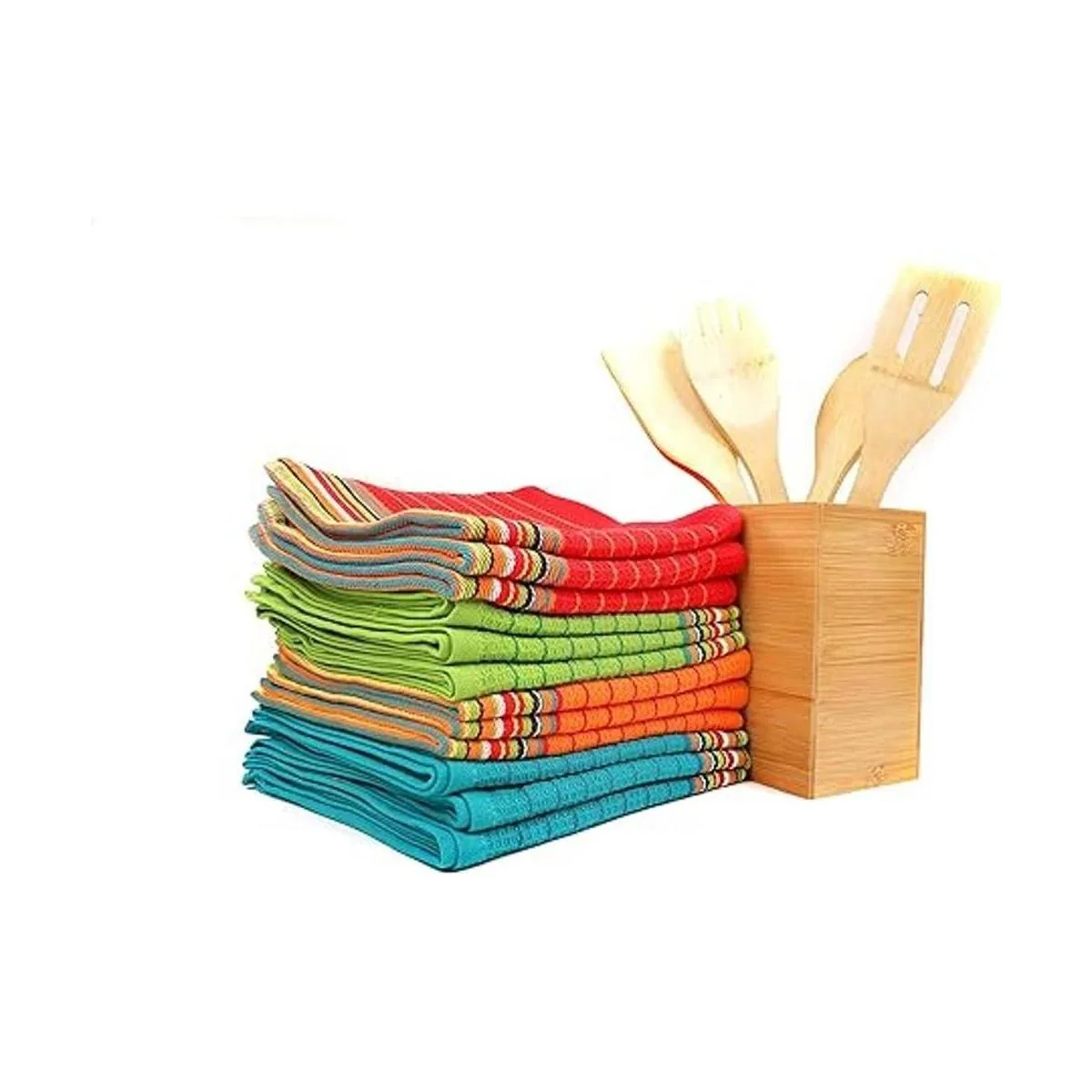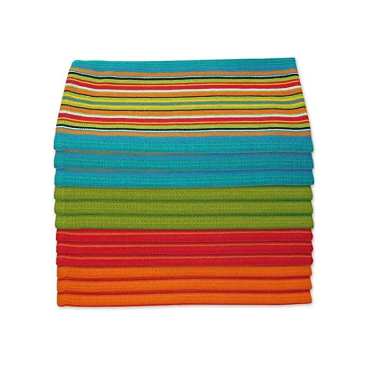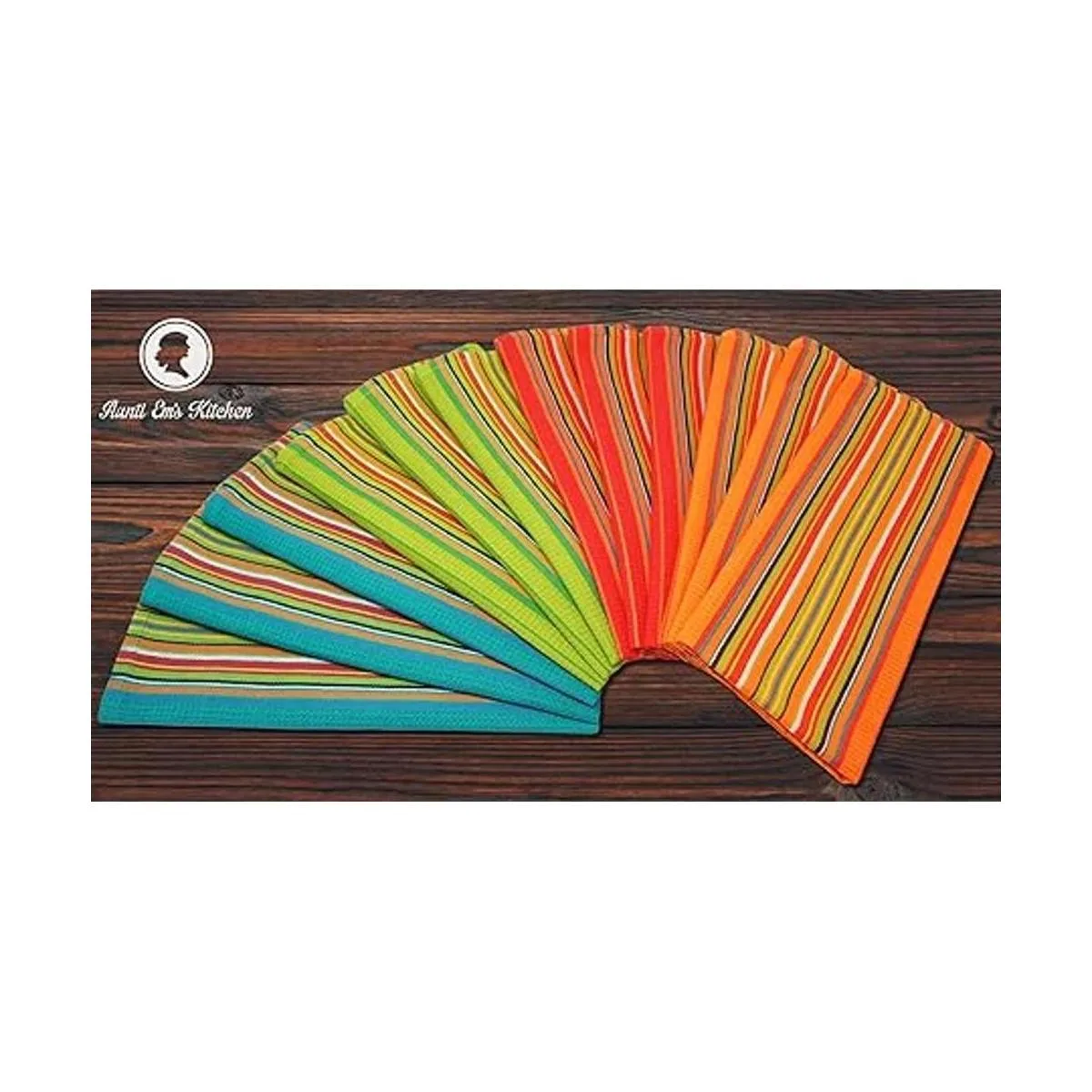 Toallas de cocina a rayas de salsa, 100 algodón absorbente natural 28 x 16 pulgadas color rojo, naranja, verde y azul, paquete de 12