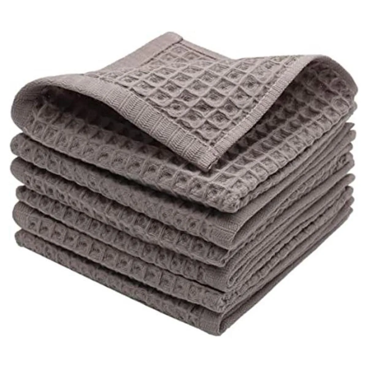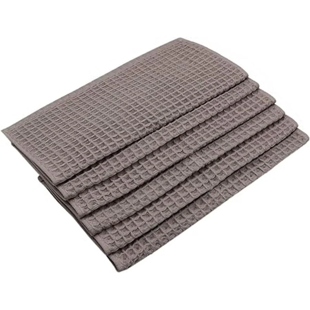 Toallas de cocina de algodón 100 natural, paños clásicos de tejido gofre, suaves y ultra absorbentes, toallas de mano de baño ligeras, de secado rápido, juego de 6 unidades gris oscuro