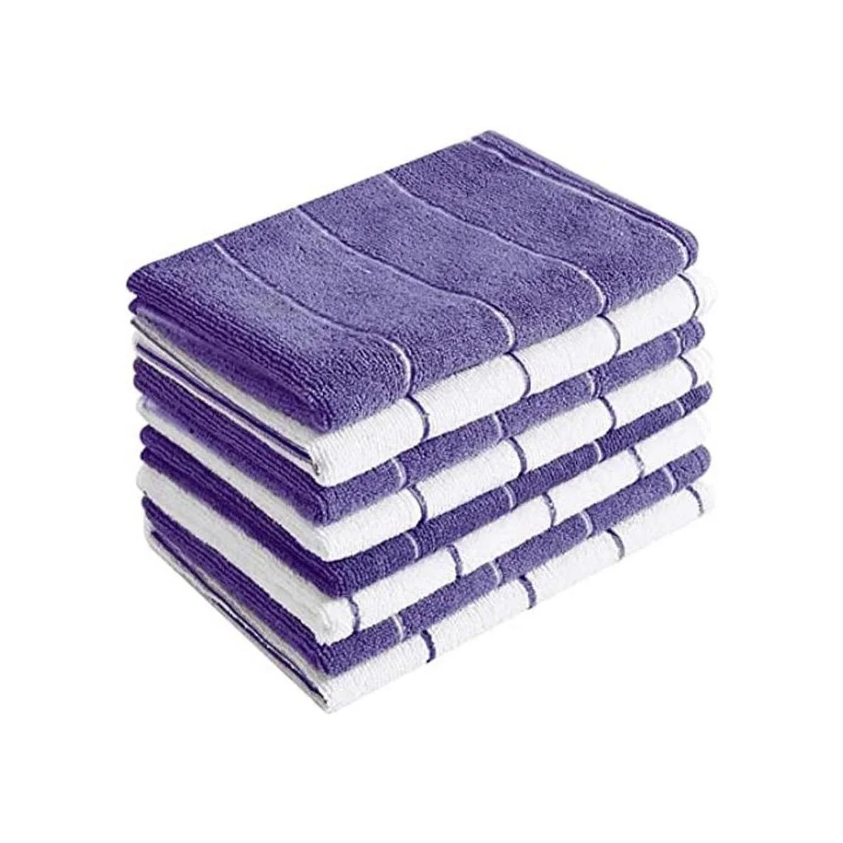 Toallas de cocina de microfibra, súper absorbentes, suaves y de color sólido, paquete de 8 toallas de cocina colores morado y blanco diseñados a rayas, 26 x 18 pulgadas morado