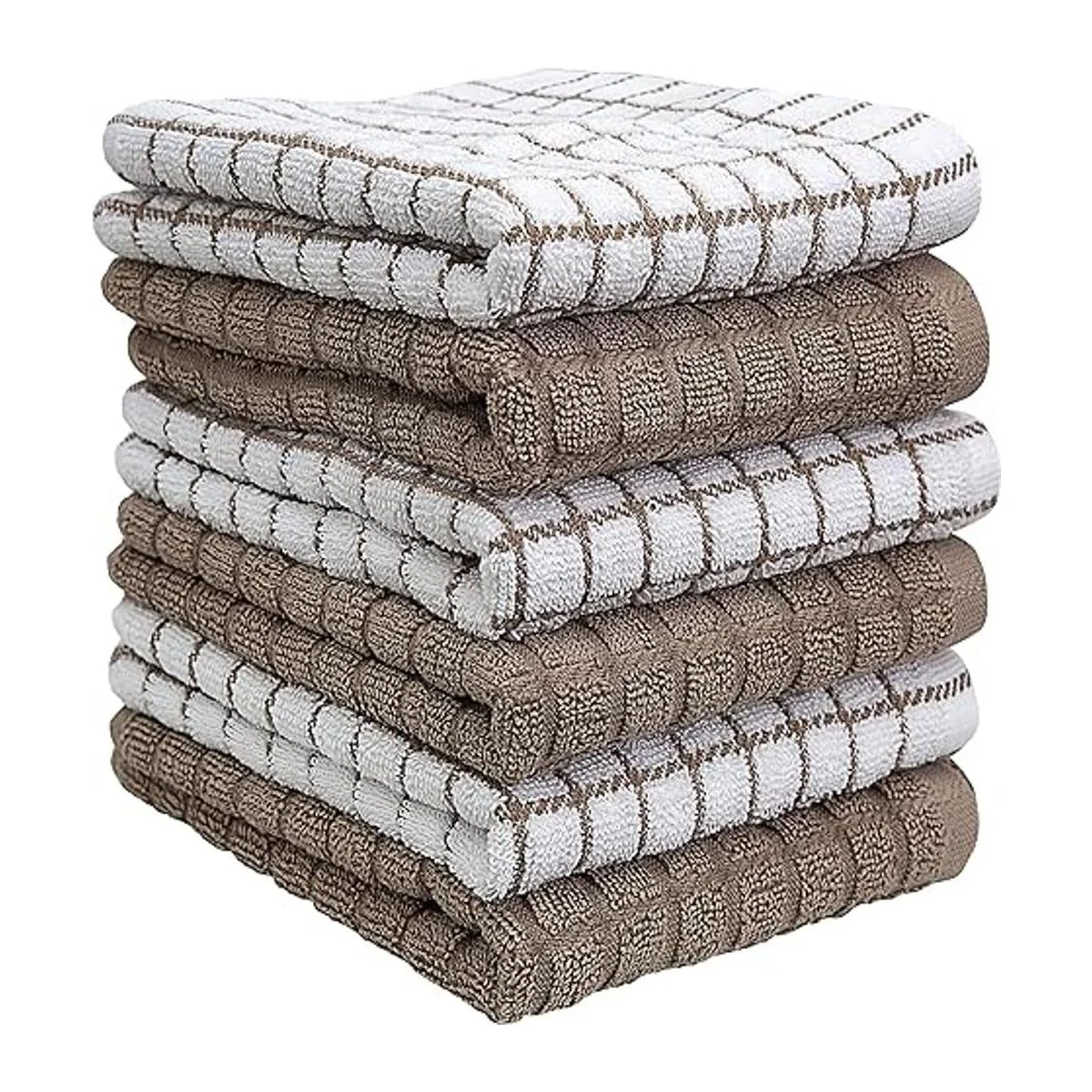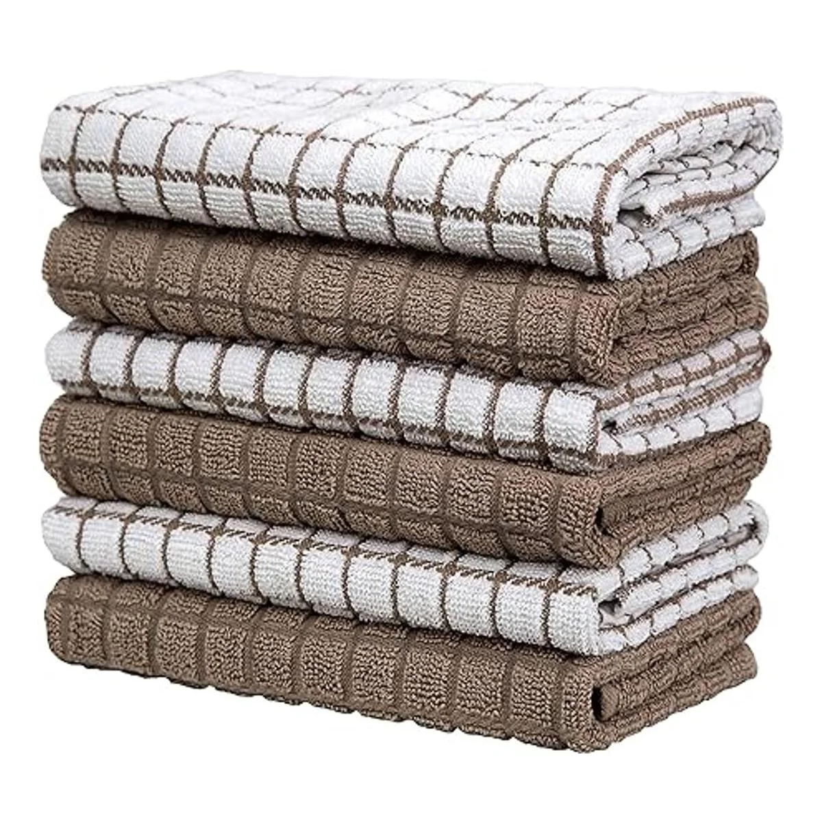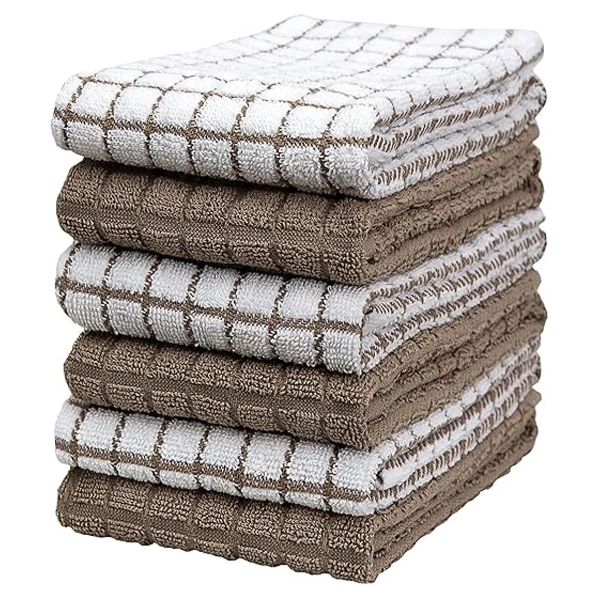 Toallas de cocina prémium 16 x 28 pulgadas, toallas de cocina de algodón, altamente absorbentes, suaves con lazo para colgar, algodón natural hilado en anillo Juego de toallas de té grandes Diseño a cuadros color bronceado, 380 GSM, paquete de 6