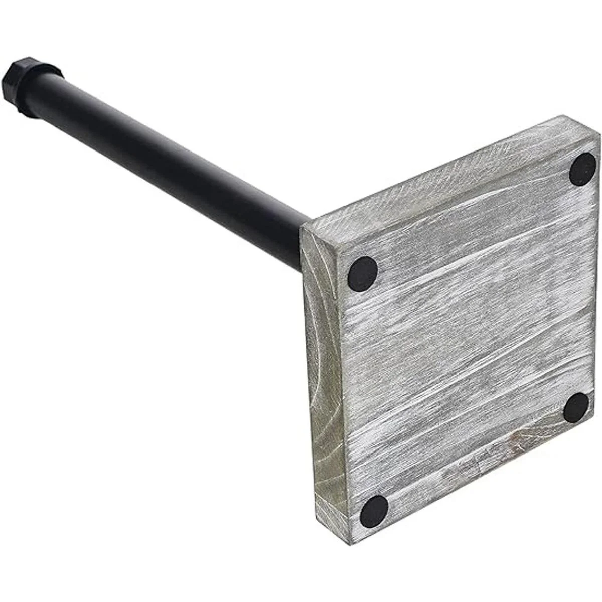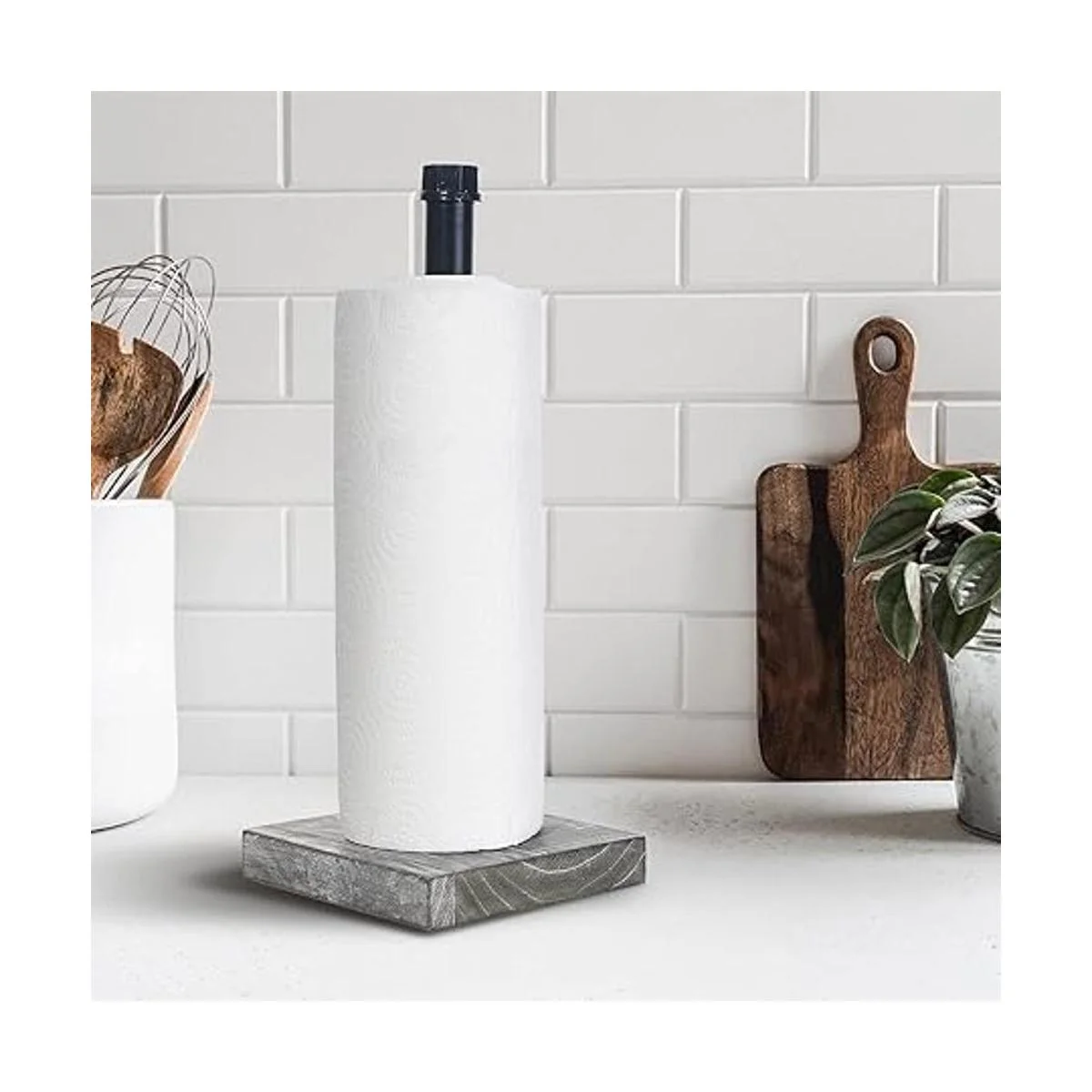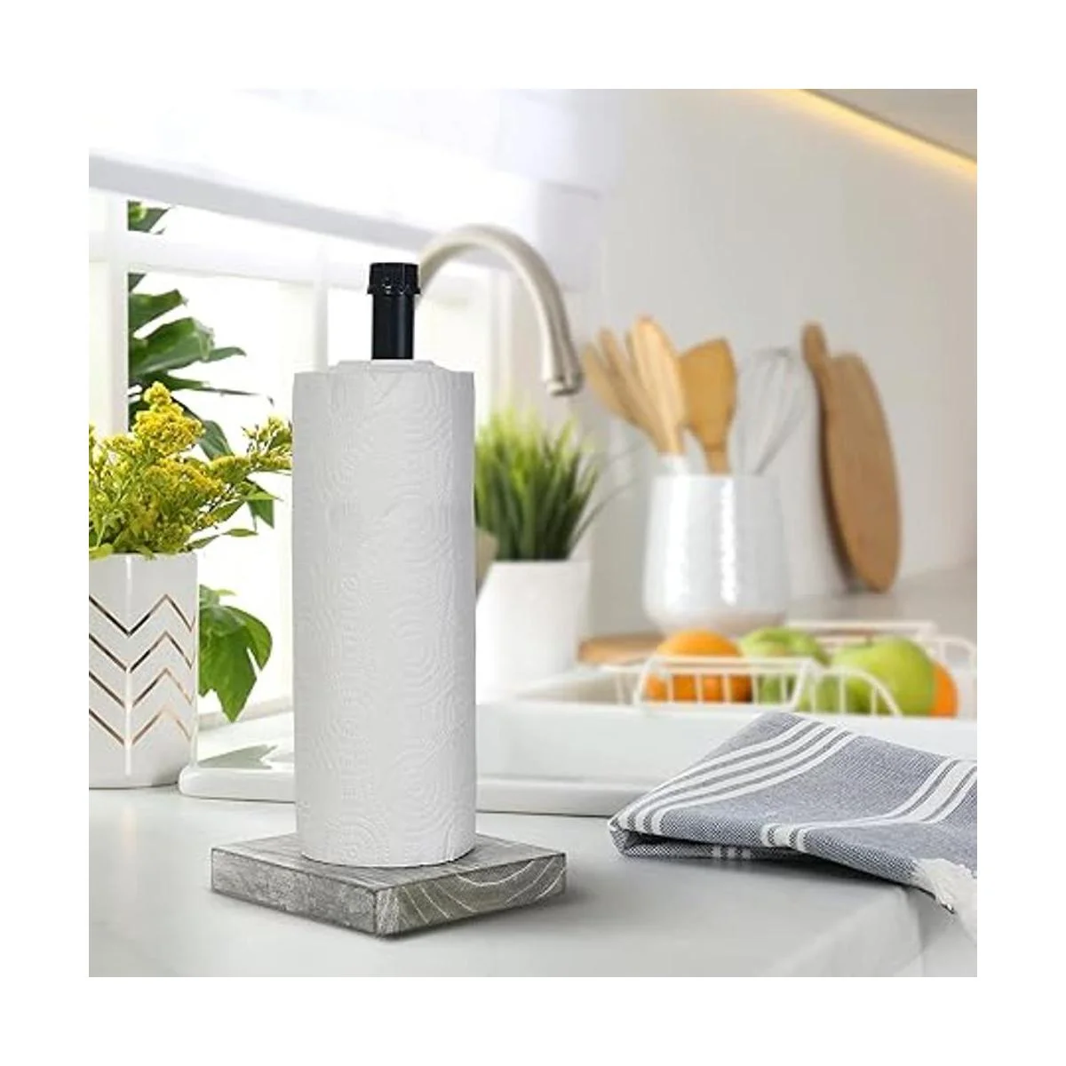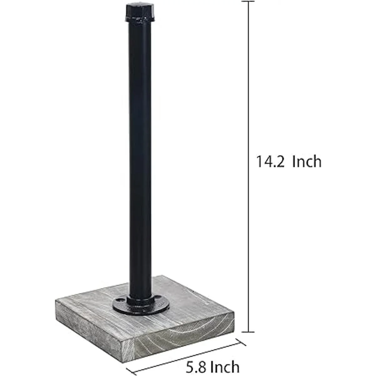 Toallero de papel con diseño de tubería de hierro industrial rústico con base de madera maciza, dispensador de rollos de toallas de papel para cocina, baño, sala de estar, oficina gris blanco