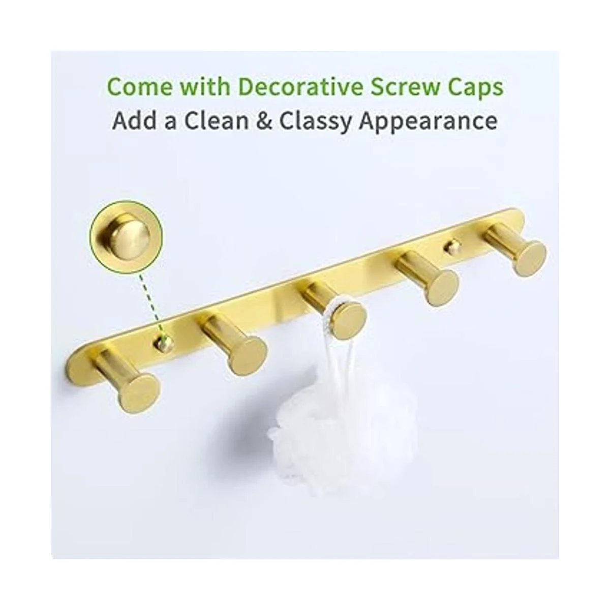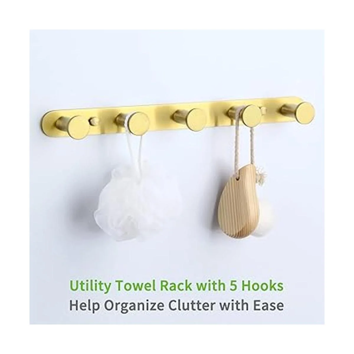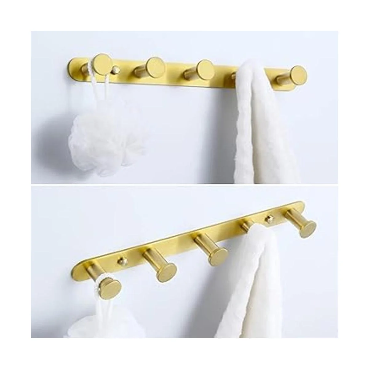 Toallero dorado cepillado, ángulo simple SUS304 de acero inoxidable para baño, 5 ganchos, soporte para toallas de cocina, montaje en pared
