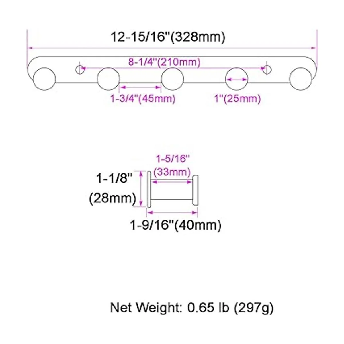 Diseño adecuado y cuidadoso: 2 ganchos están separados de 1.772 in, no demasiado anchos ni demasiado cerca, la profundidad utilizable de cada gancho es de 1.299 in con menos intrusiva, dimensión total largo x profundidad x alto: 1215/16 x 19/16 x 11/8 pulgadas 328 x 40 x 20 x 20 x 2 x 6 x 6 x 6 x 6 x 2.0 x 2.0 x 2.0 in 0.315 in