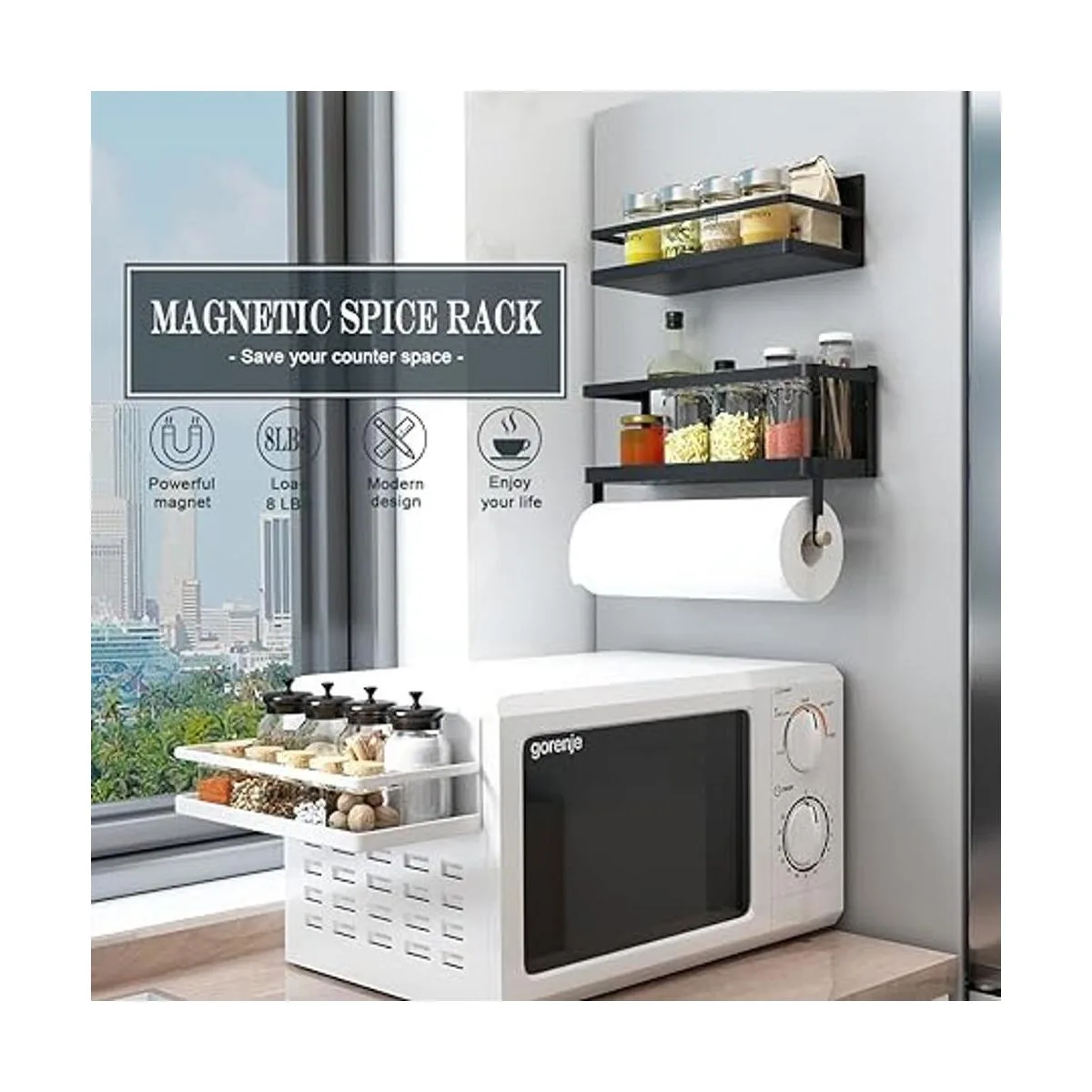 Impresionante estante para especias: hecho de acero grueso de alta calidad, es duradero y tiene imanes súper fuertes en la parte posterior. La superficie está tratada con acabado negro mate. Se adapta perfectamente a tu cocina.