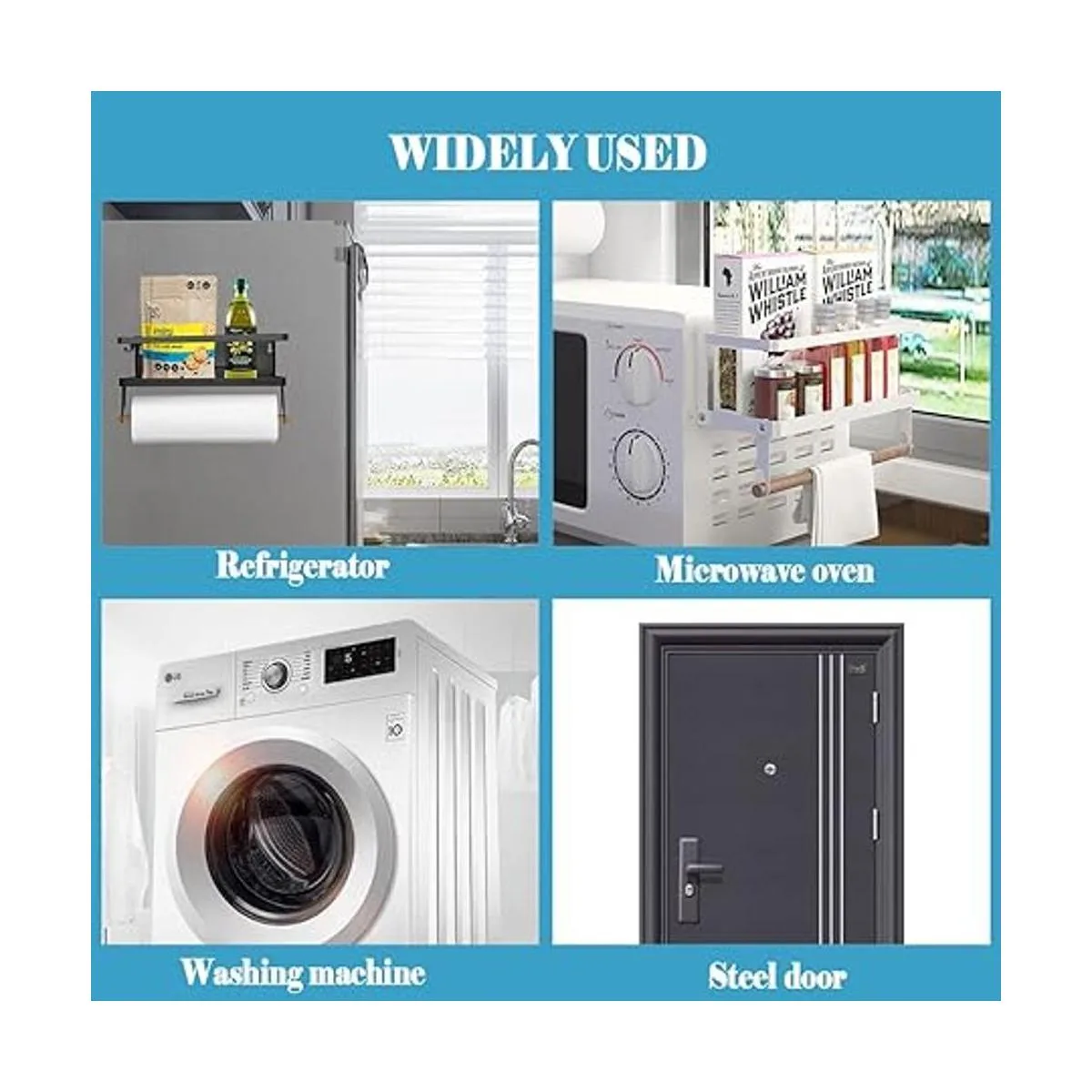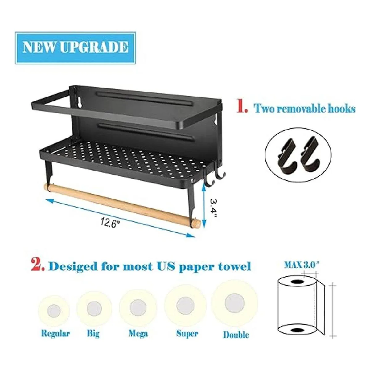 Toallero magnético de papel, estante magnético 2 en 1 con ganchos, estante de pared para refrigerador negro, con gancho
