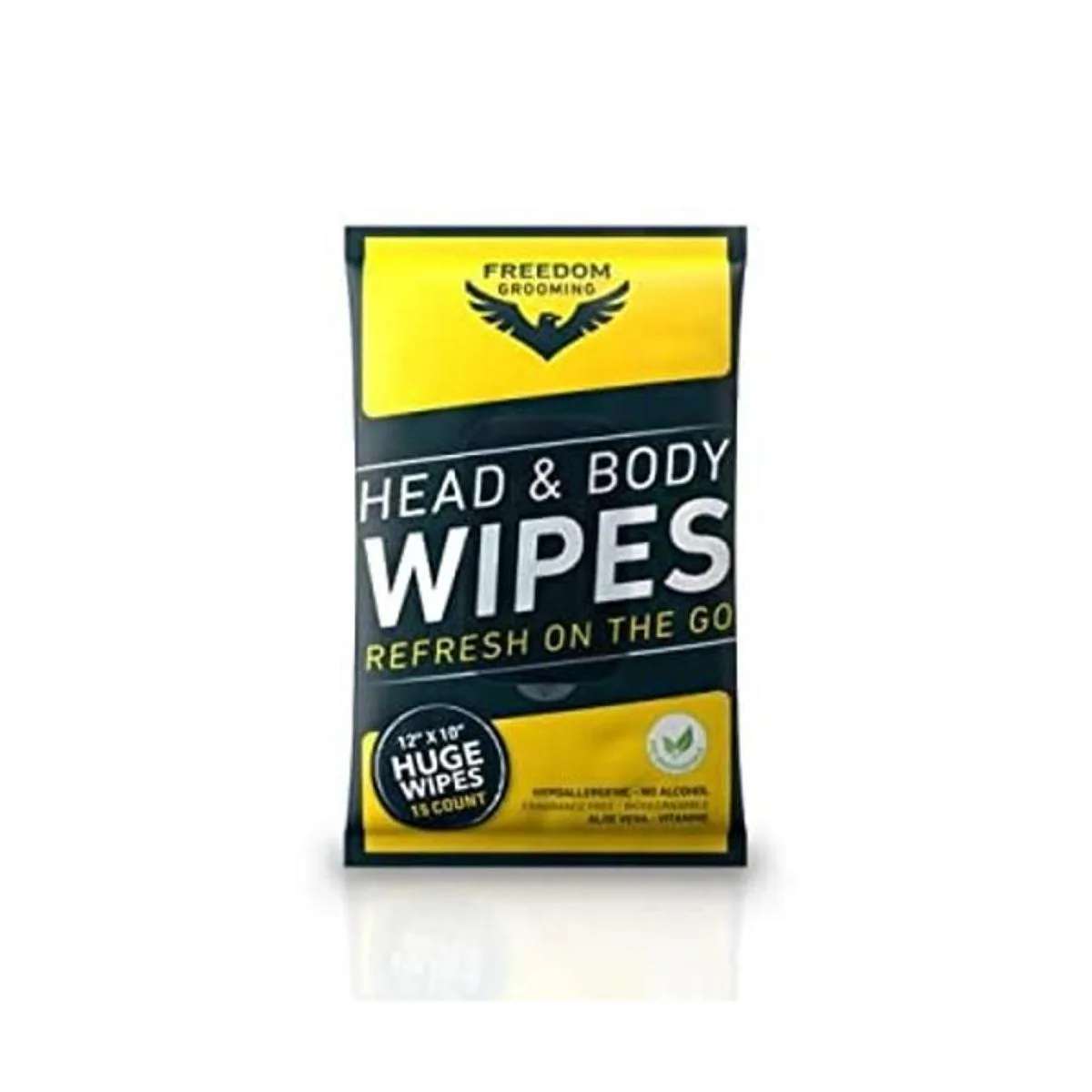 Toallitas para la cabeza y el cuerpo – FREEDOM GROOMING – Toallitas refrescantes para cabeza calva, cuerpo y facial para hombres, limpiadoras, toallitas naturales suaves sin perfume, 15 unidades