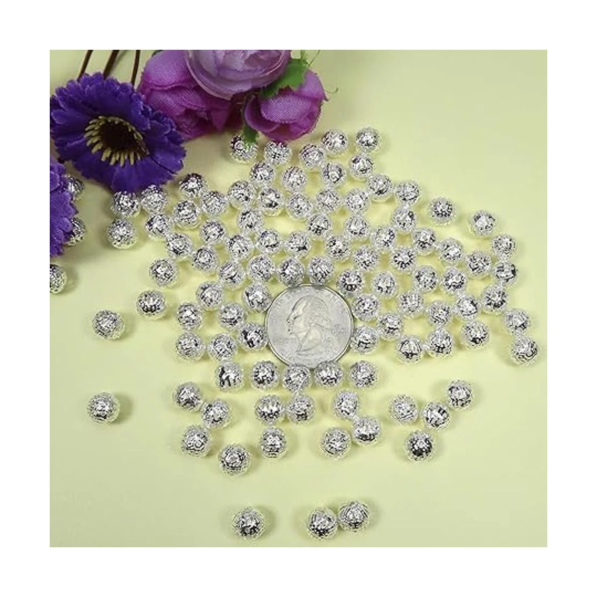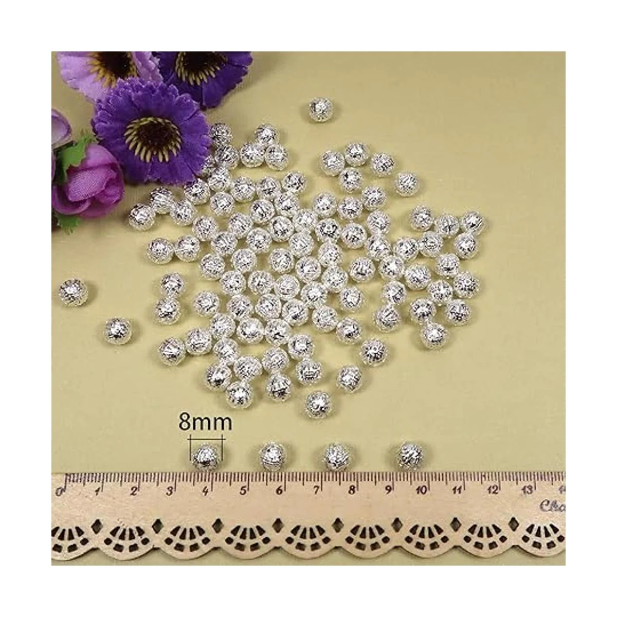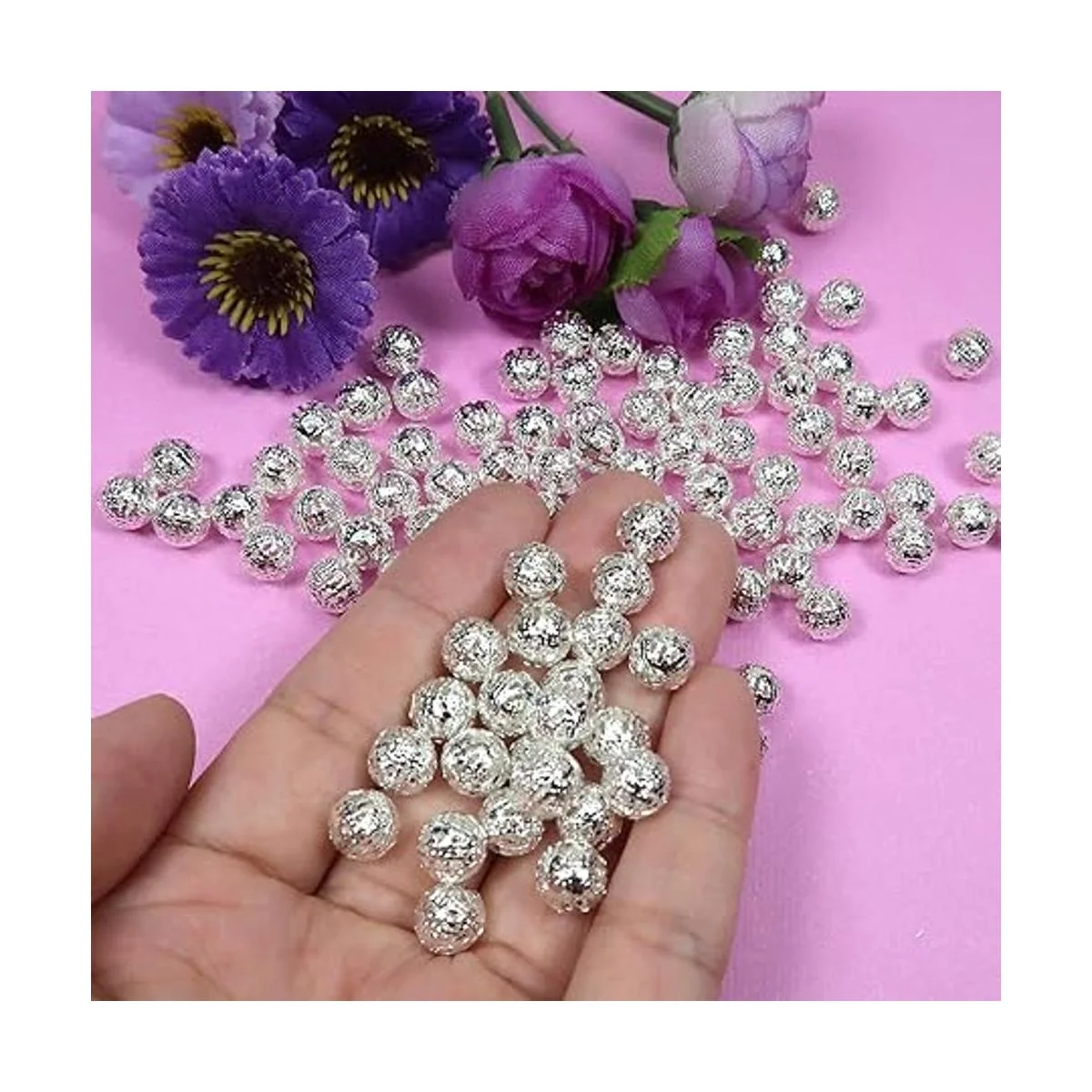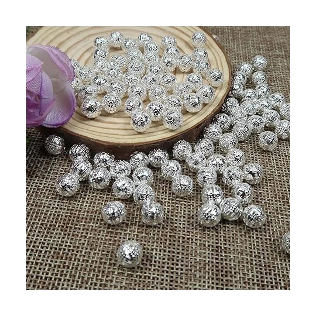 TOAOB 100 cuentas de bolas huecas de filigrana de 0.315 in chapados en plata, redondas, de metal suelto, para manualidades, pulseras, collares, pendientes, joyería