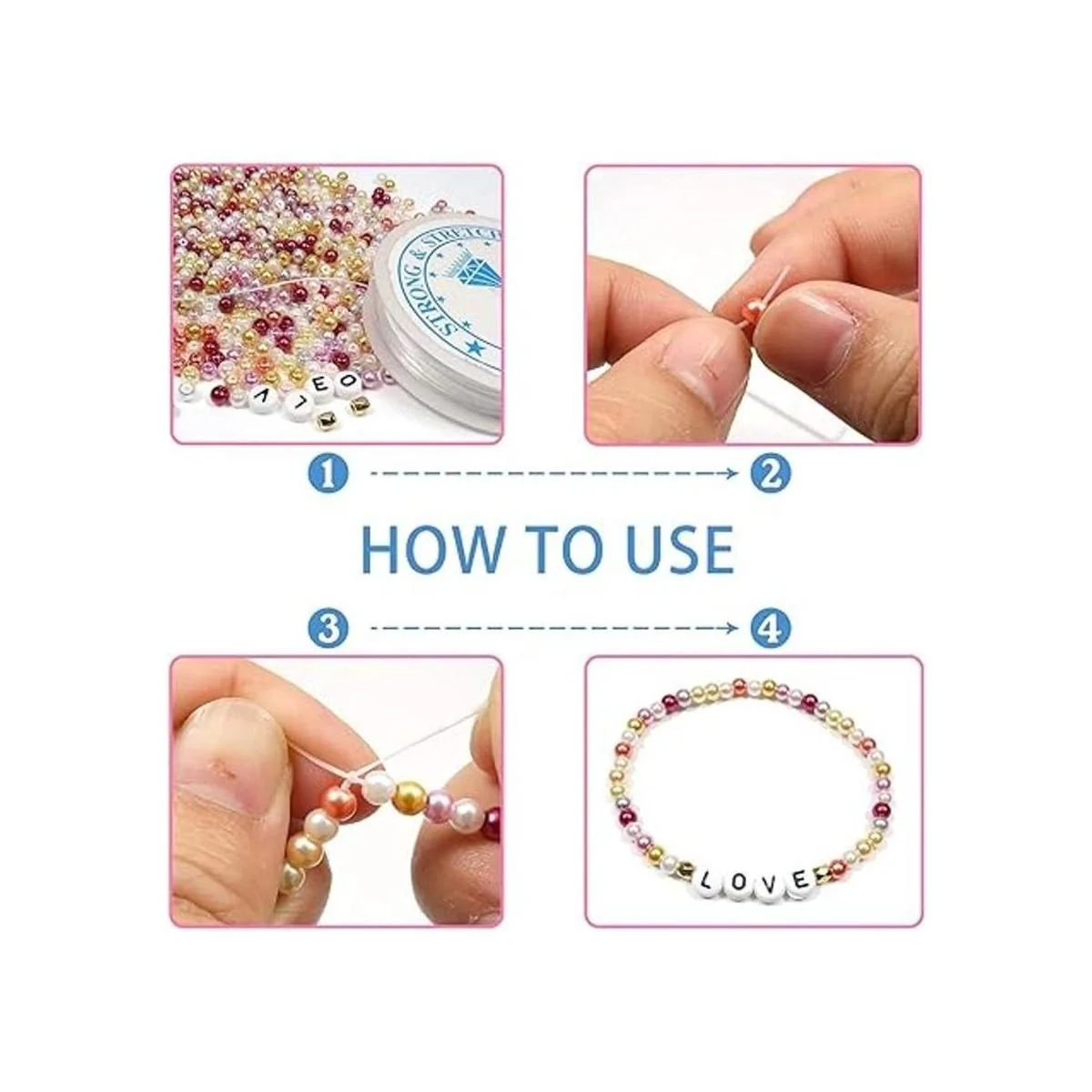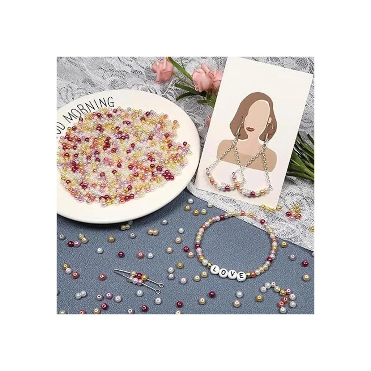Recibirás: recibirás alrededor de 1000 perlas redondas; cantidad suficiente para satisfacer tus diversas necesidades de fabricación de joyas o creaciones de manualidades. El kit de cuentas de perlas con aguja puede enhebrar el cordón en el agujero fácilmente