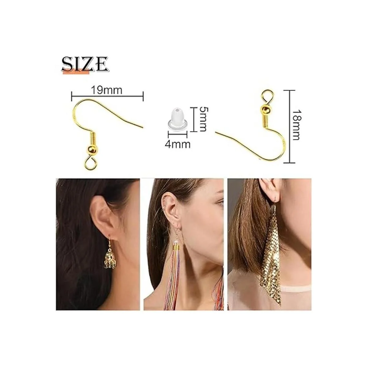 Amplio uso: estos ganchos para aretes y parte trasera para aretes son perfectos para hacer aretes, proyectos de manualidades, puedes utilizarlos con tus accesorios de joyería favoritos, hacer diferentes estilos de hermosos aretes para el uso diario o cualquier ocasión especial
