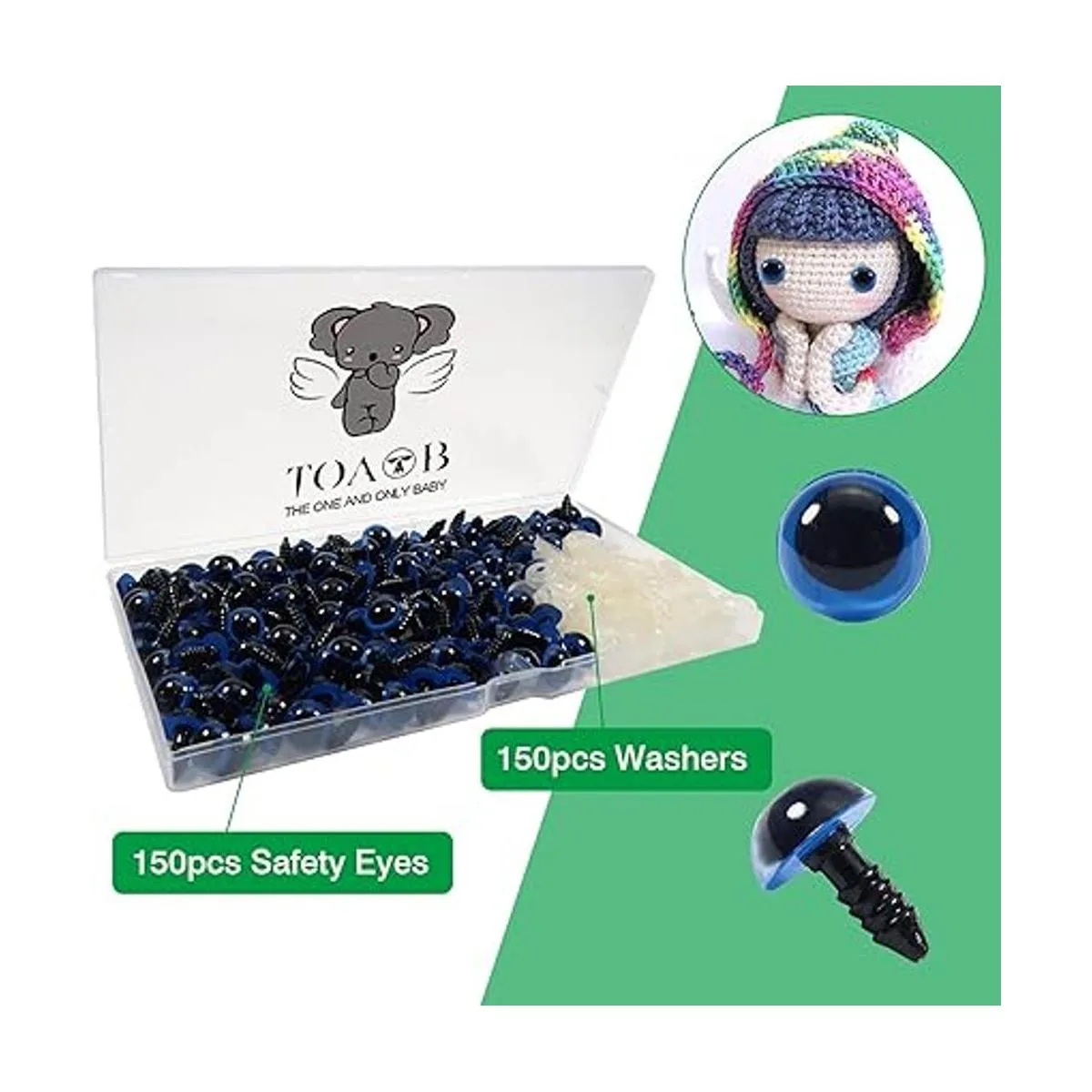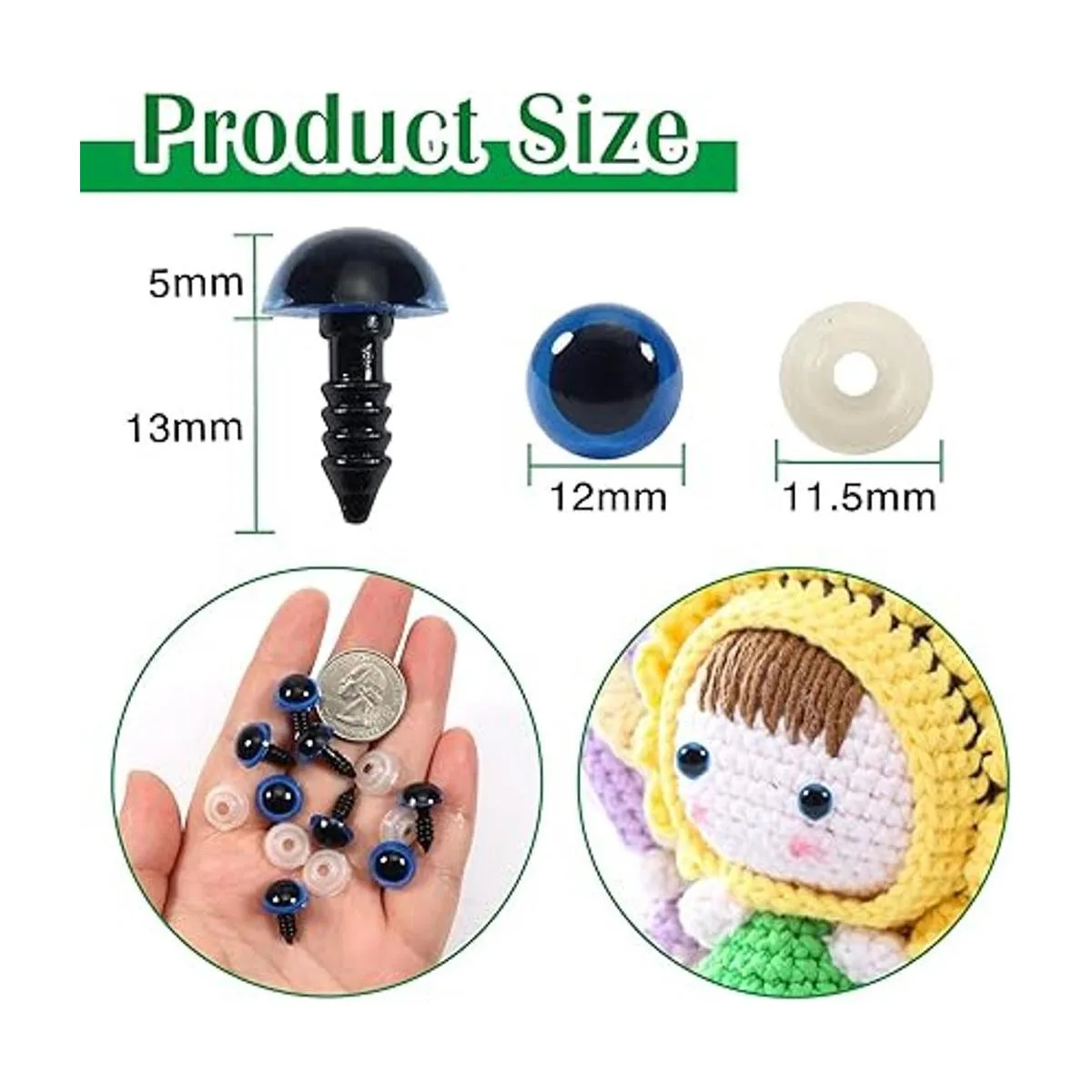 Tamaño: 0.472 in. Cantidad: 150 pares de ojos de seguridad; viene con 150 pares de arandelas
