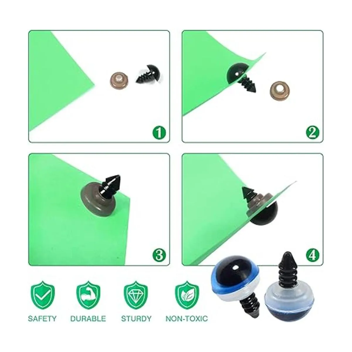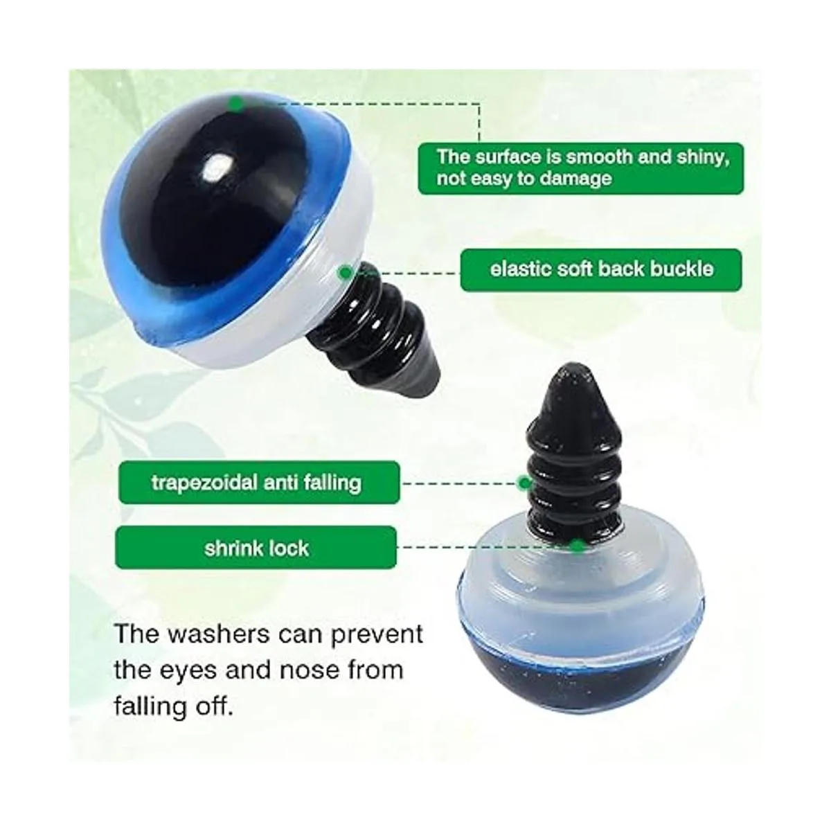 Material de alta calidad: estos ojos y narices de seguridad están hechos de plástico de alta calidad, seguro, respetuoso con el medio ambiente. Con una superficie lisa y brillante, sólida y duradera, ideal para hacer juguetes de muñecas