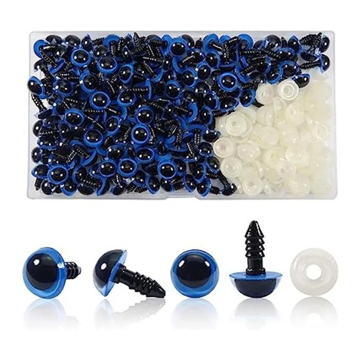 TOAOB 150 ojos de seguridad de plástico de 0.472 in, color azul, con arandelas para animales de peluche, Amigurumis ganchillo osos fabricación de muñecas