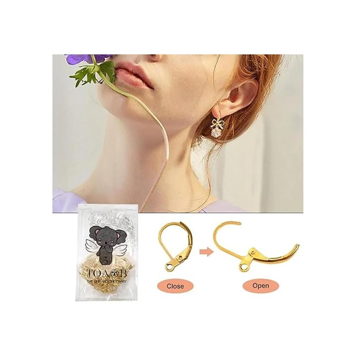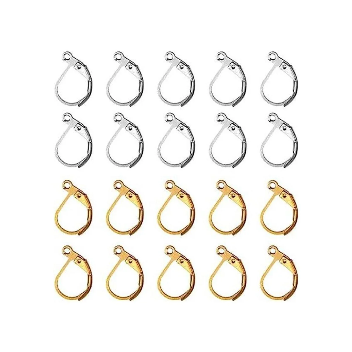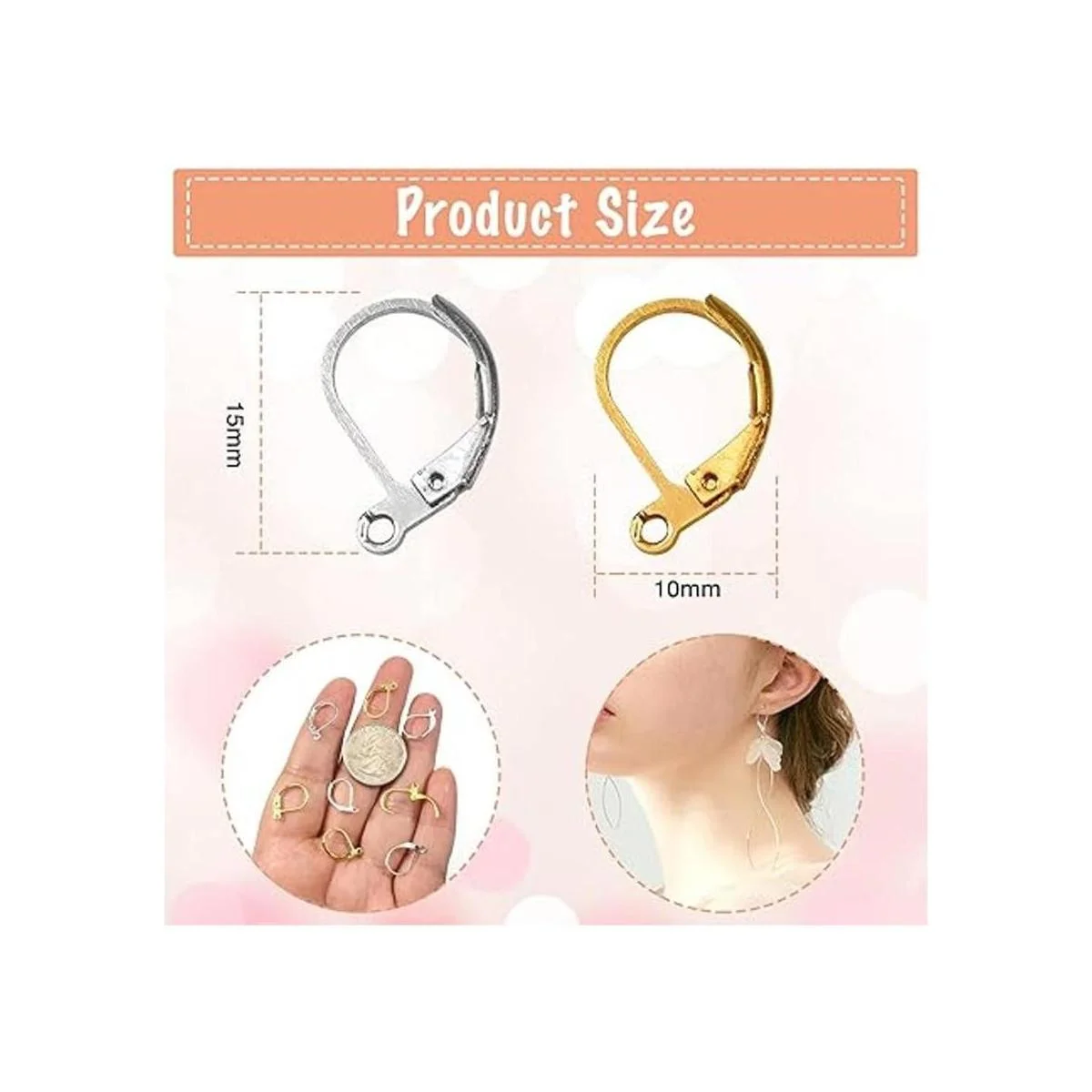 TOAOB 200 ganchos para aretes franceses de 0.394 x 0.591 in, latón chapado en plata y oro, suministros de aretes hipoalergénicos para hacer joyas