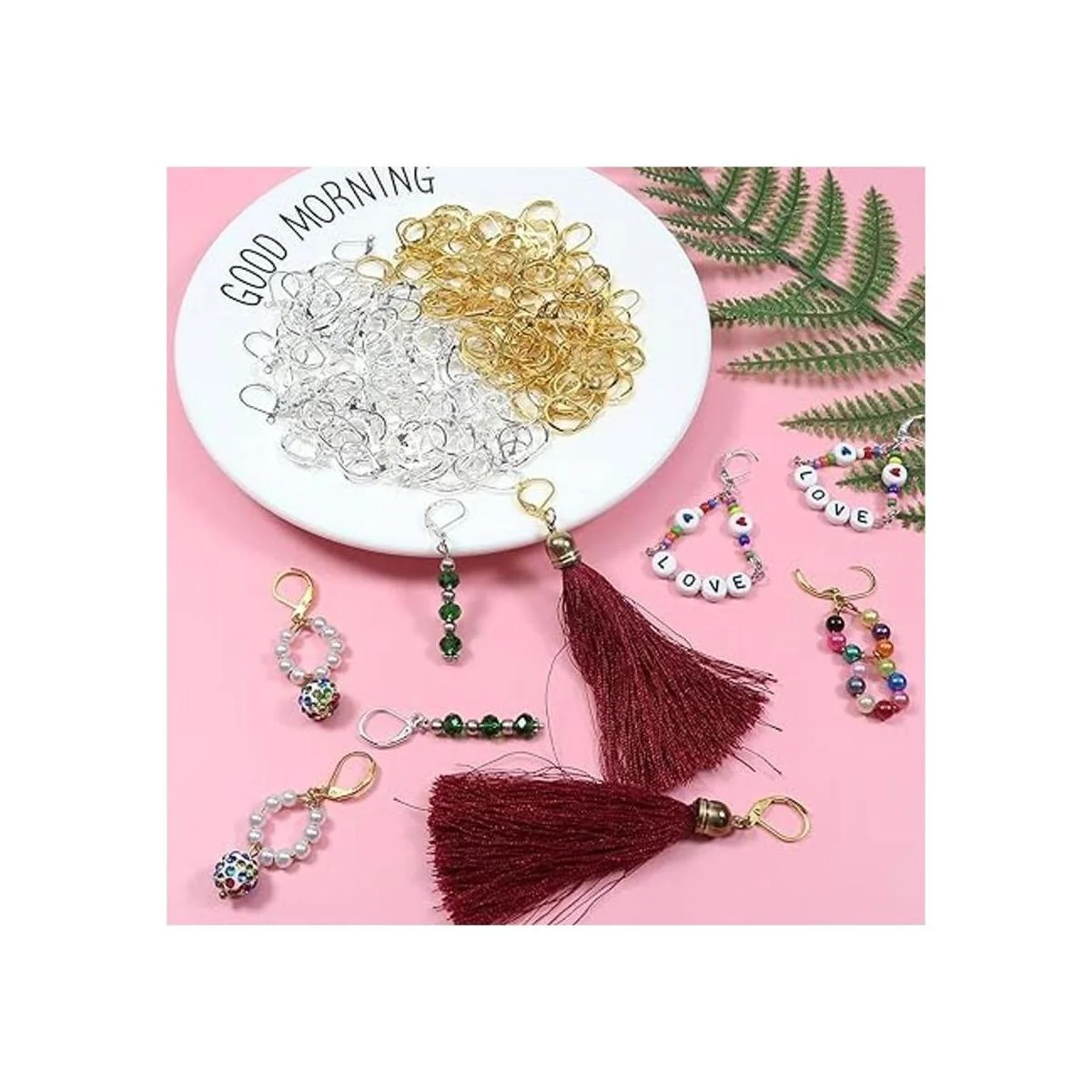 Cierres de palanca seguros con un aro abierto, brillante, pequeño, ligero, no se cae y se pierde, te permiten añadir fácilmente dijes colgantes de cuentas o gotas para hacer aretes de gota de estilo único