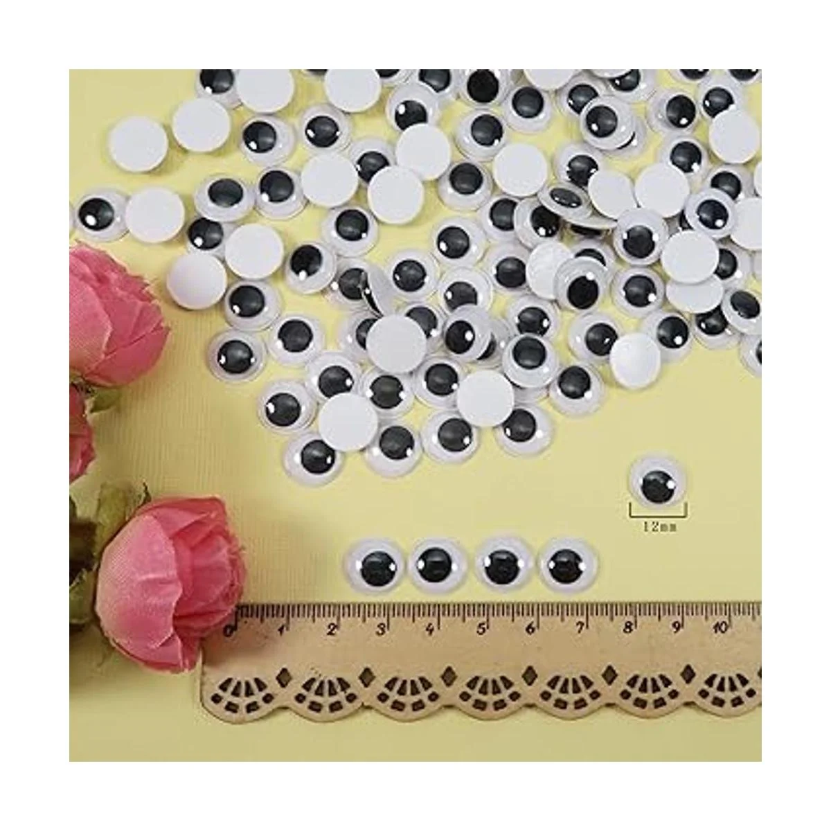 TOAOB 300 unidades de plástico con ojos Google, autoadhesivos de 0.472 in, color negro, redondo, ojos, manualidades, manualidades, álbumes de recortes, accesorios
