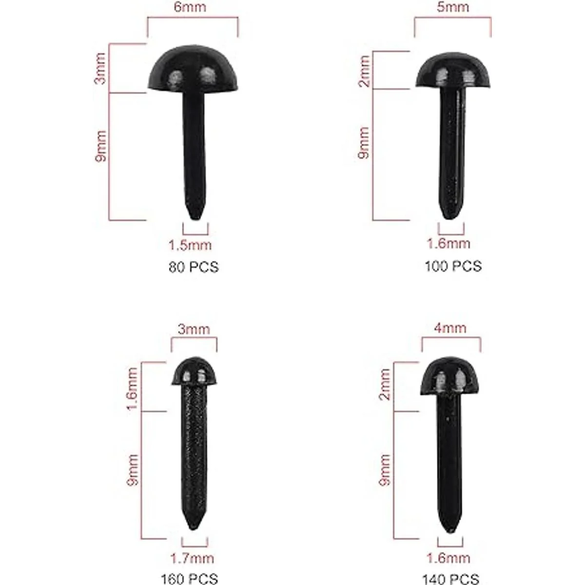 TOAOB 480 mini ojos de seguridad de plástico negro de 0.118 in, 0.157 in, 0.197 in, 0.236 in, varios tamaños, pequeños ojos de manualidades para agujas de fieltro, muñecas, marionetas de peluche para hacer costura de animales
