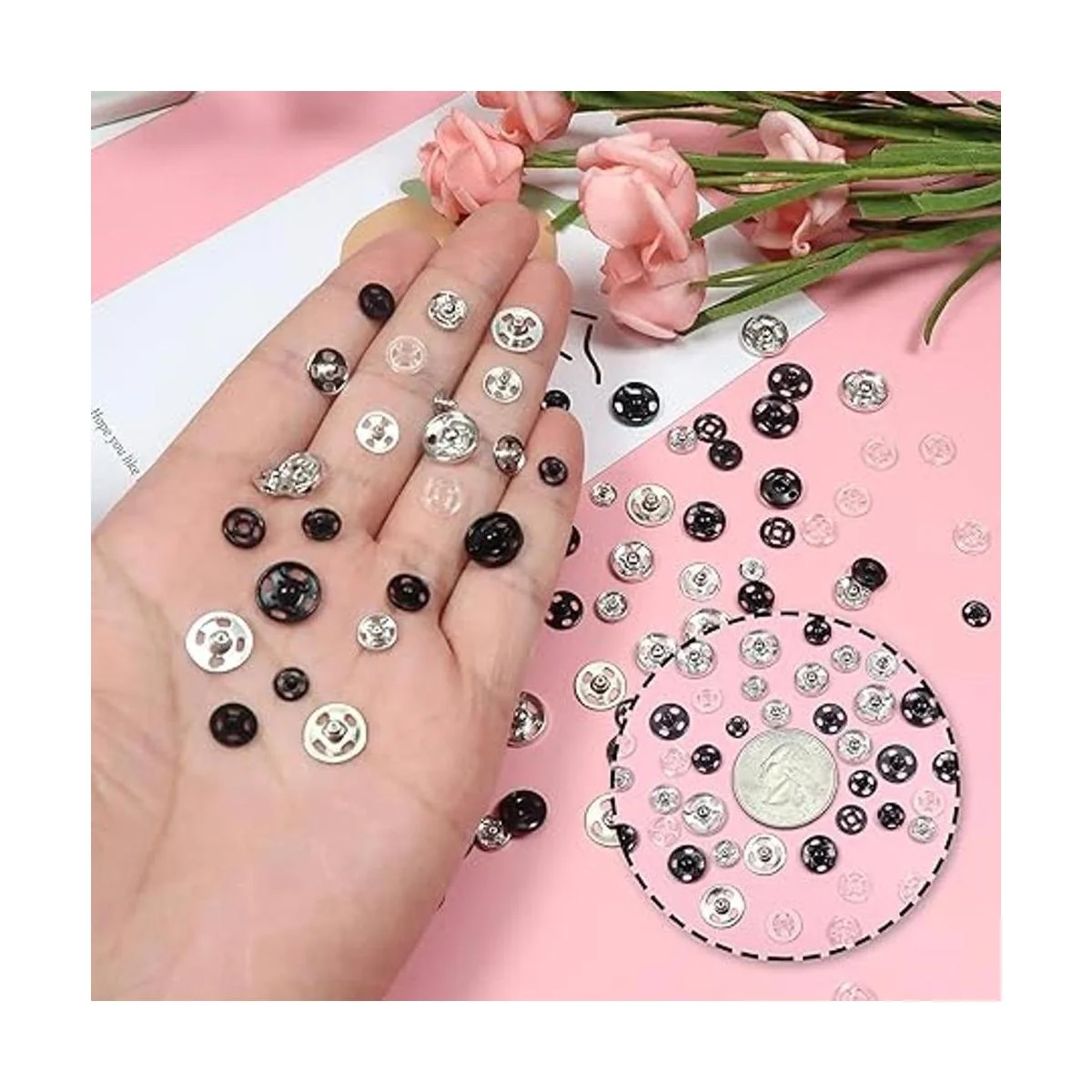 El paquete incluye: 100 juegos de botones a presión, incluye 50 juegos de botones de presión negros y 50 juegos de botones a presión plateados, gran cantidad para usar; color: negro y plateado