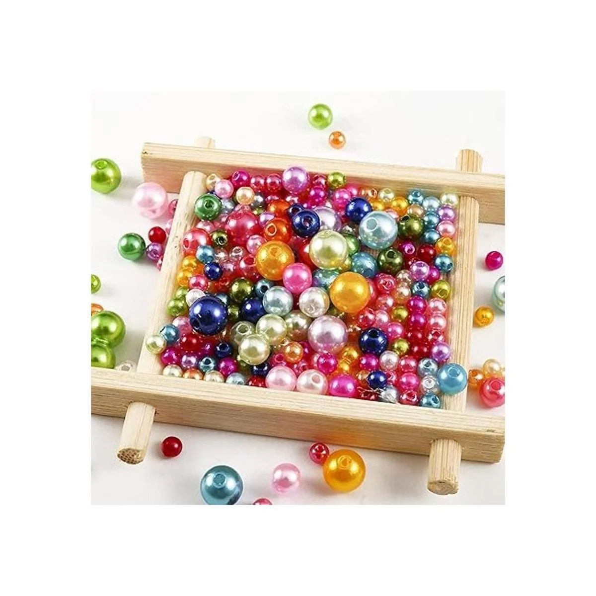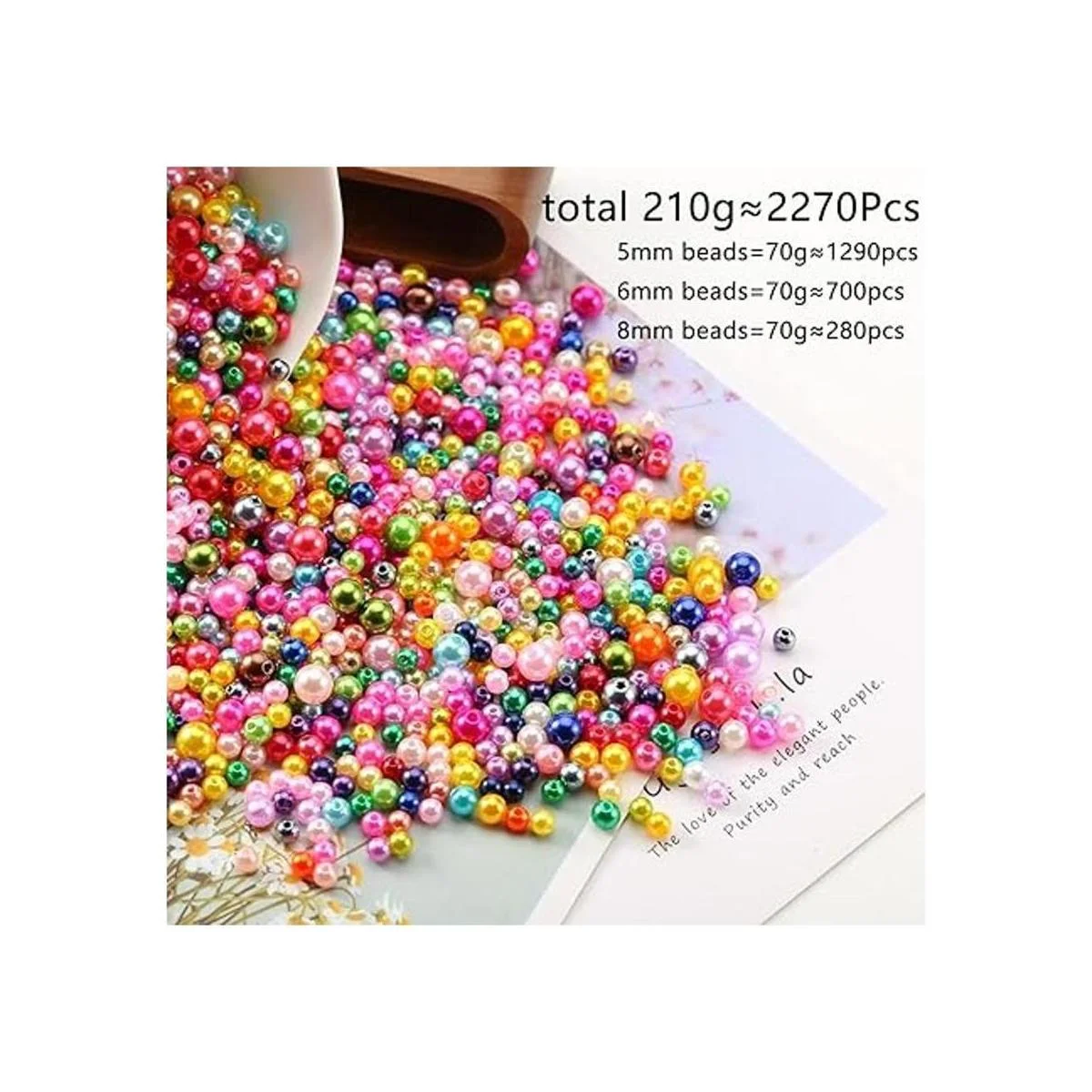 ToBeIT 2270 cuentas de satén luste, cuentas de plástico de perlas de perlas de colores con agujeros para surtido, manualidades, collares, pulseras, fabricación de joyas, 3 tamaños 5, 6, 0.315 in
