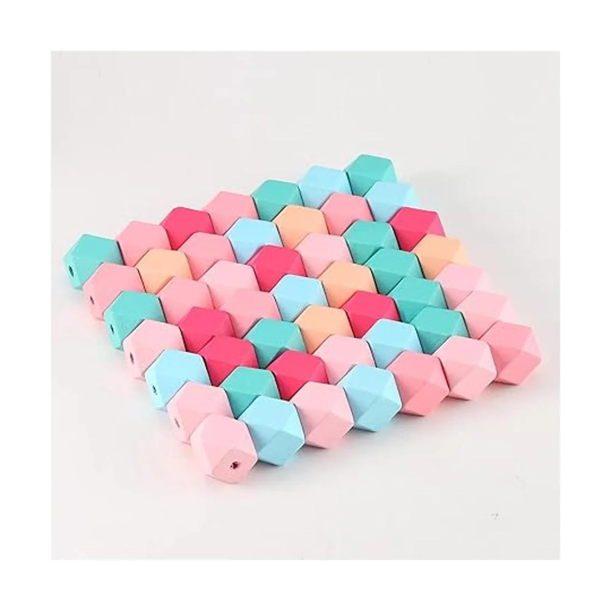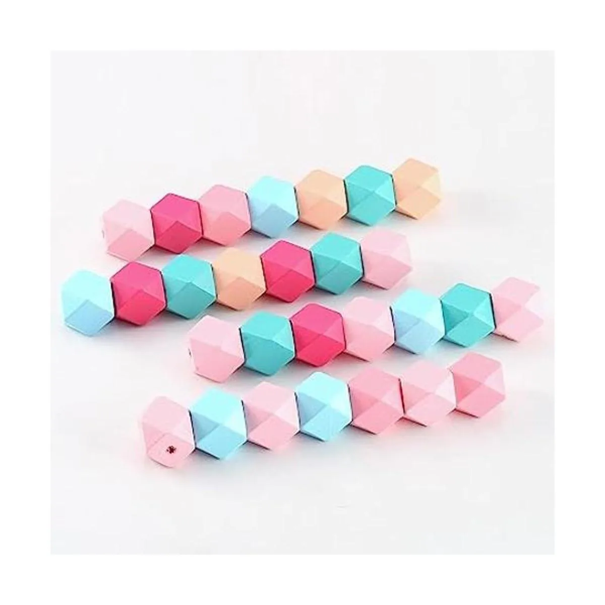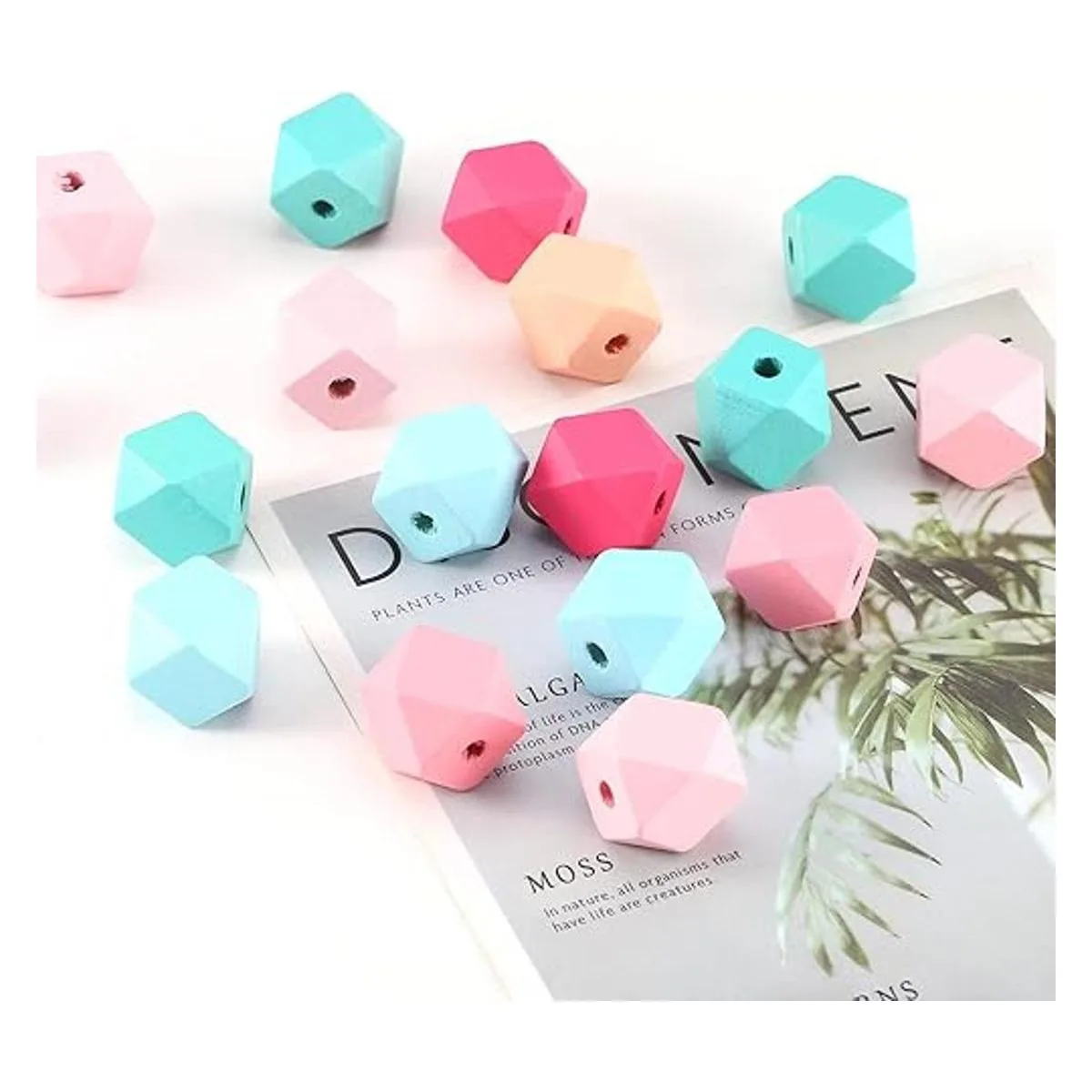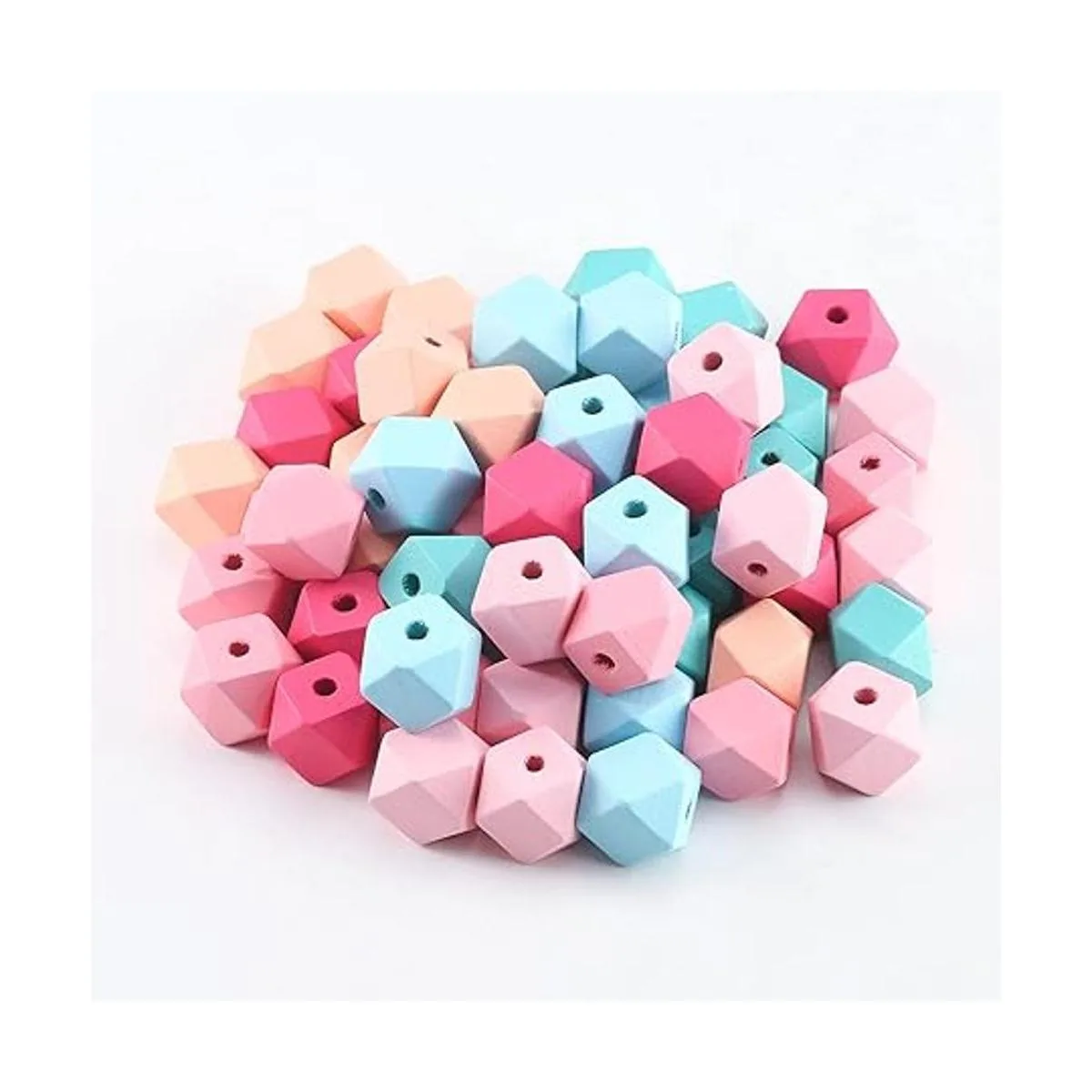 ToBeIT 60 cuentas de madera, cuentas geométricas de madera facetada, cuentas de madera de color caramelo, guirnalda para hacer manualidades 0.787 in