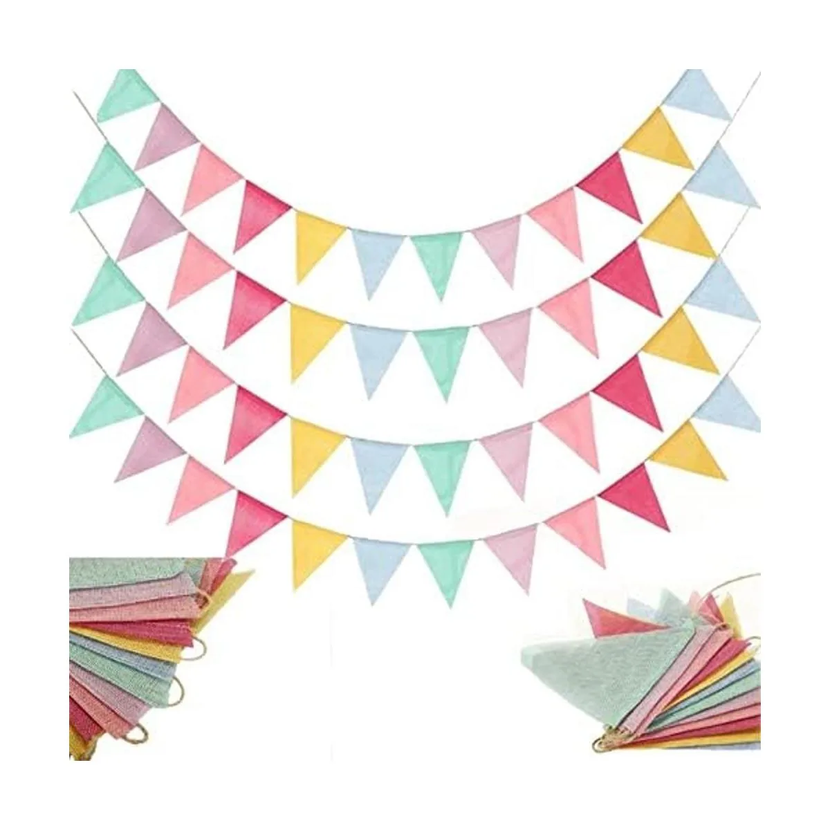 ToBeIT Banderines triangulares con colgante de arpillera imitada multicolor, banderines triangulares para fiestas y festivales, decoración colgante de banderines triangulares