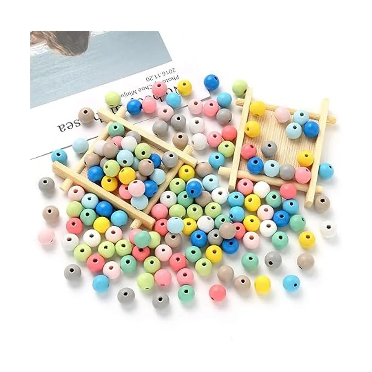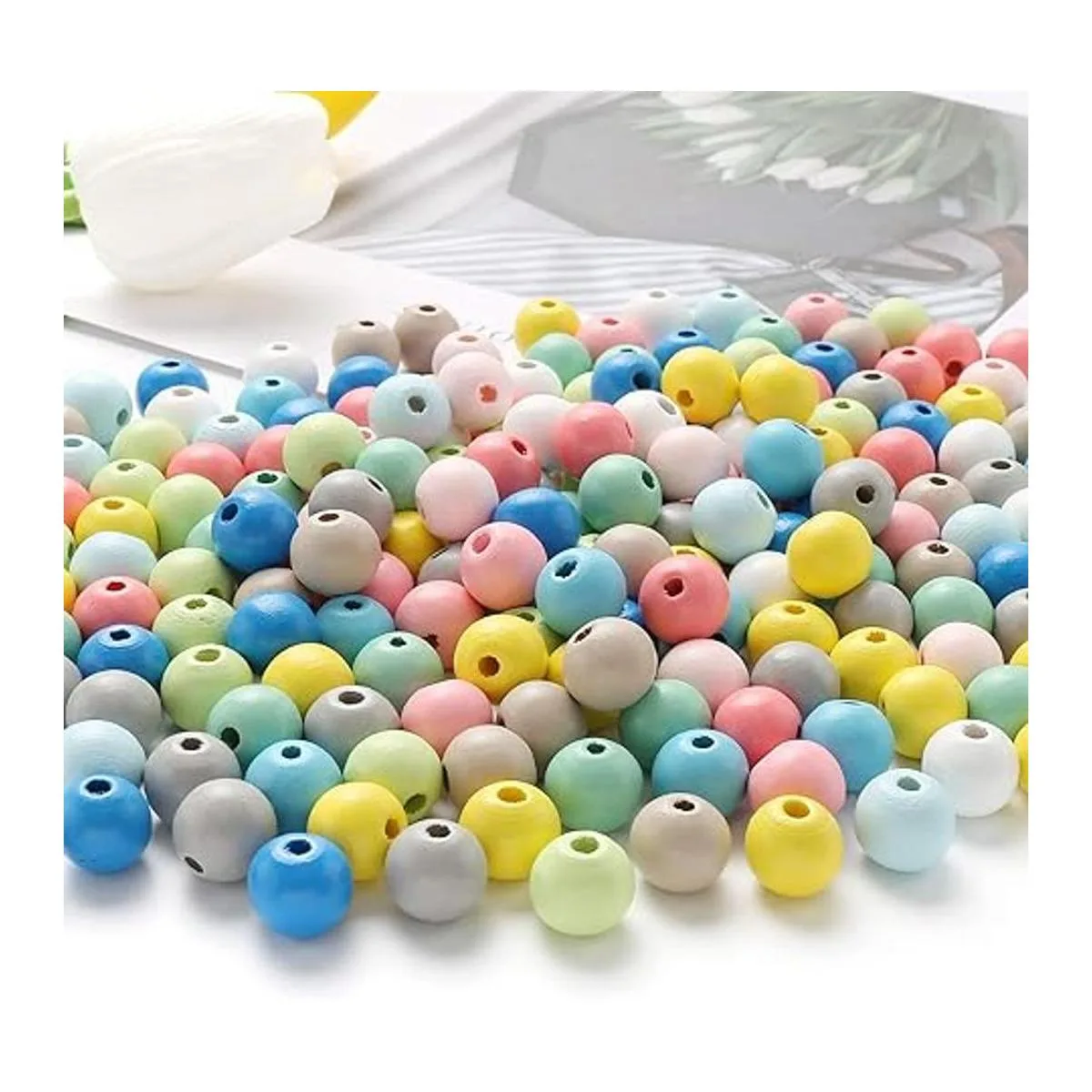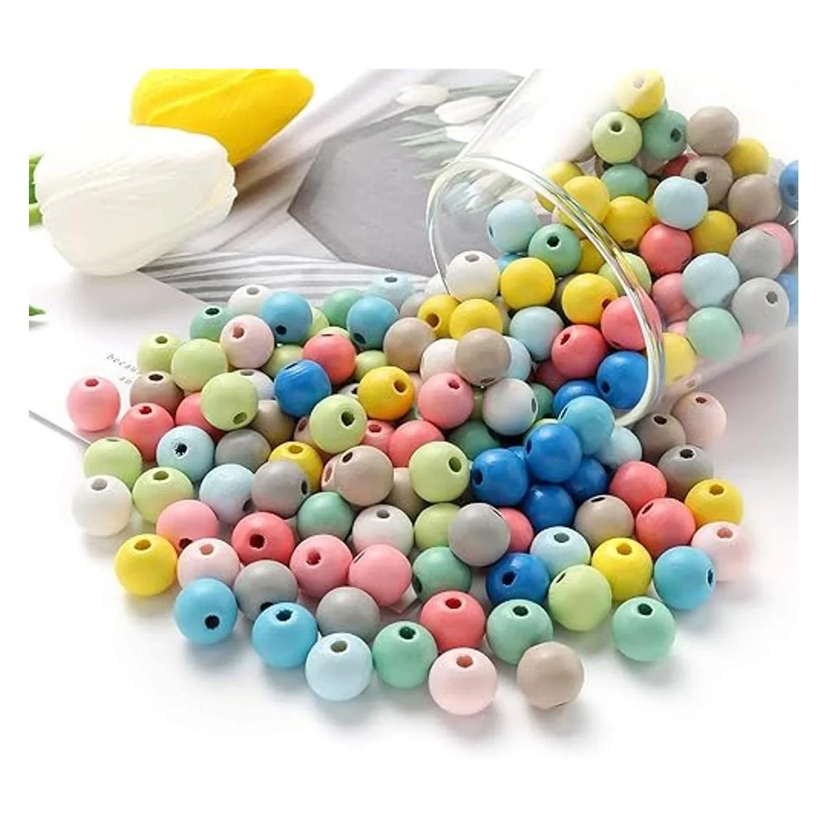 ToBeIT Cuentas de madera, 400 cuentas redondas de madera de colores surtidos, agujeros pintados, cuentas espaciadoras redondas de madera para manualidades, fabricación de joyas 400 piezas
