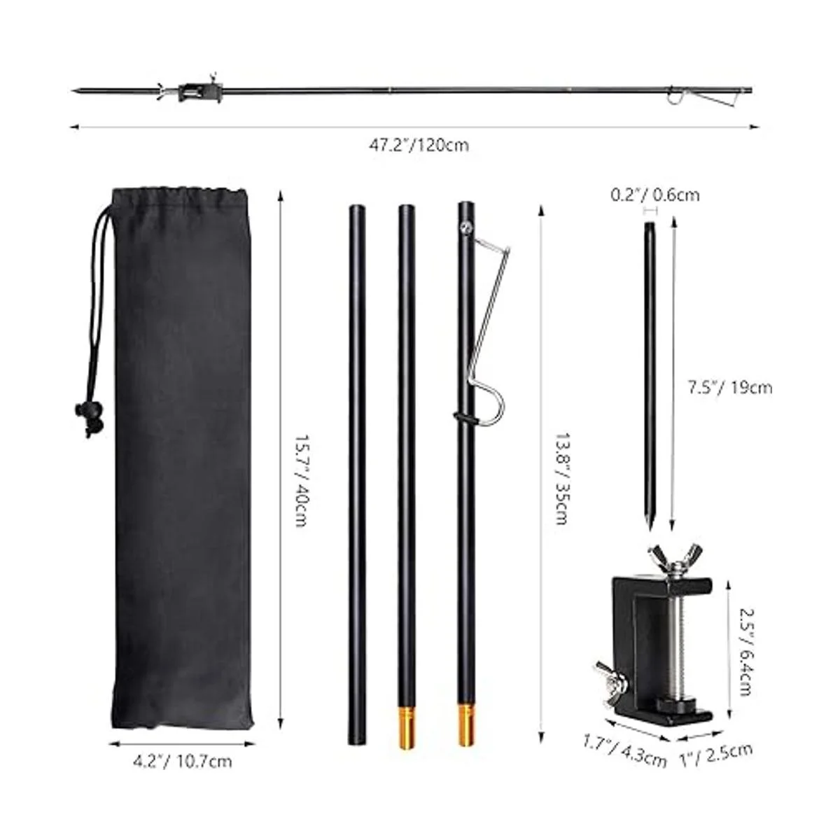 Dimensiones del tamaño: la sección de poste extraíble te permite ajustar la altura libremente, altura totalmente montada: 47.2 in. Un compañero perfecto para camping, senderismo, viajes, picnic, fuego de primavera, pesca y otras actividades al aire libre para tu viaje al aire libre.