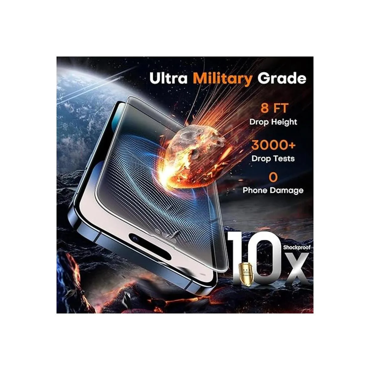 A prueba de golpes militares Este producto está hecho de vidrio militar ultra fuerte 9H a prueba de explosiones con diseño de borde reforzado, garantiza que cada esquina de la pantalla esté protegida. La pantalla sobrevive incluso si cae desde una altura de 7 pies.