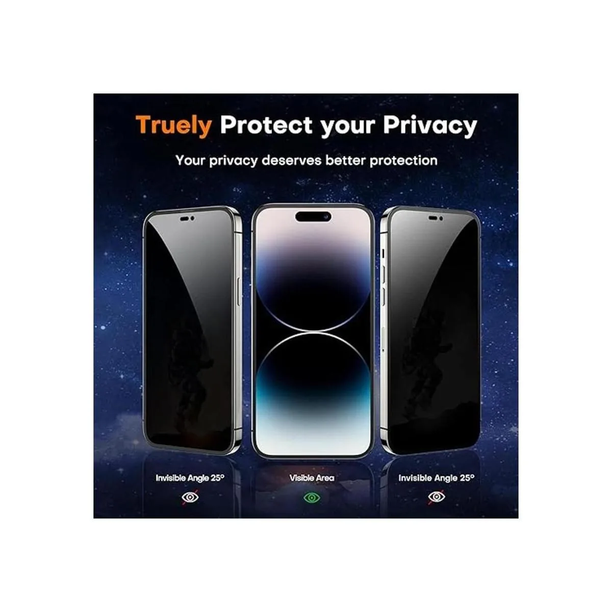 El paquete incluye: diseñado para iPhone 14 Pro Max 6.7 5G 2 paquetes de protectores de pantalla de vidrio de privacidad y 2 paquetes de protectores de lente de cámara con tecnología de corte láser precisa que ofrece la máxima cobertura de pantalla de borde a borde.