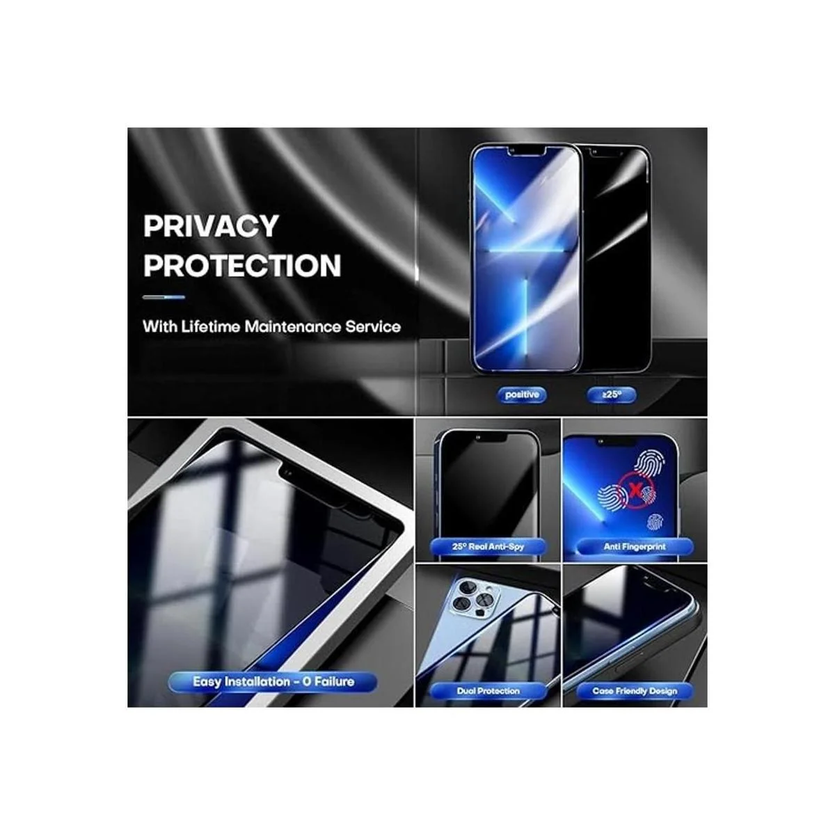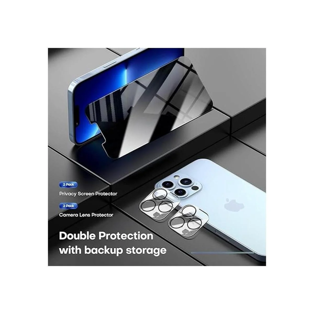 El paquete incluye: iPhone 13 Pro Max 5G de 6.7 pulgadas, 2 paquetes de protectores de pantalla de vidrio de privacidad y 2 paquetes de protectores de lente de cámara con tecnología de corte láser precisa que ofrece la máxima cobertura de pantalla. Protege la pantalla de arañazos diarios, caídas, golpes, mientras que ofrece protección antihuellas y privacidad.