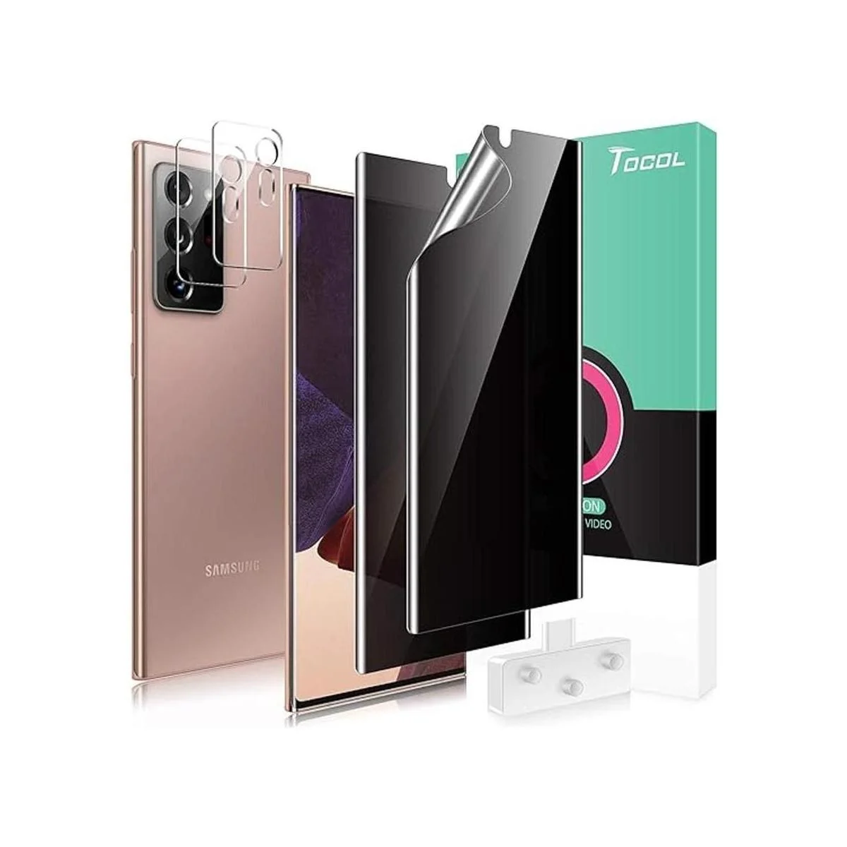 TOCOL Paquete de 4 protectores de pantalla compatibles con Samsung Galaxy Note 20 Ultra, paquete de 2 protectores de pantalla de película de TPU suave y flexible antiespías y paquete de 2 protectores de lente de cámara que funcionan con sensor de huellas dactilares
