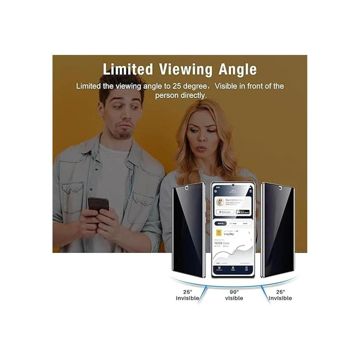 Alta privacidad: la pantalla solo es visible para las personas directamente delante de la pantalla y no afecta la potencia. Pantalla de privacidad Mantén toda tu información personal lejos de los ojos de extraños que te rodean.