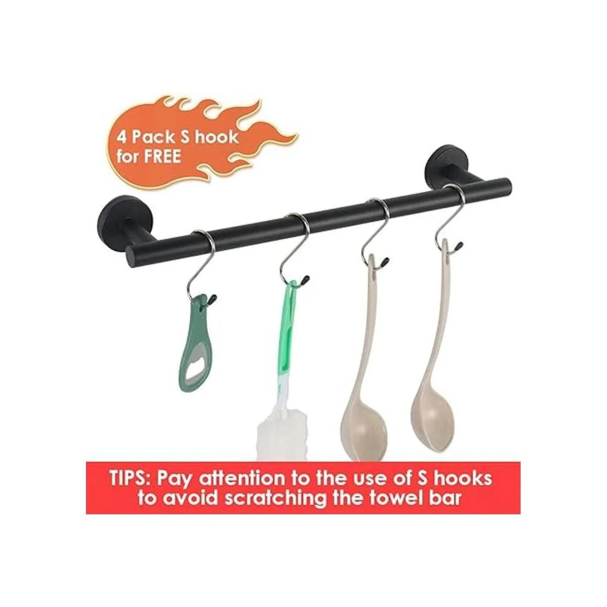 Ahorro de espacio y diseño de moda: puedes obtener una barra de toalla de baño y 4 ganchos en forma de S, que son muy flexibles de usar. El diseño de moda hará que parezca un producto nuevo incluso muchos años después. Inoxidable, resistente al agua y diseño de moda adecuado para baño, cocina, armarios, lavabos, etc.