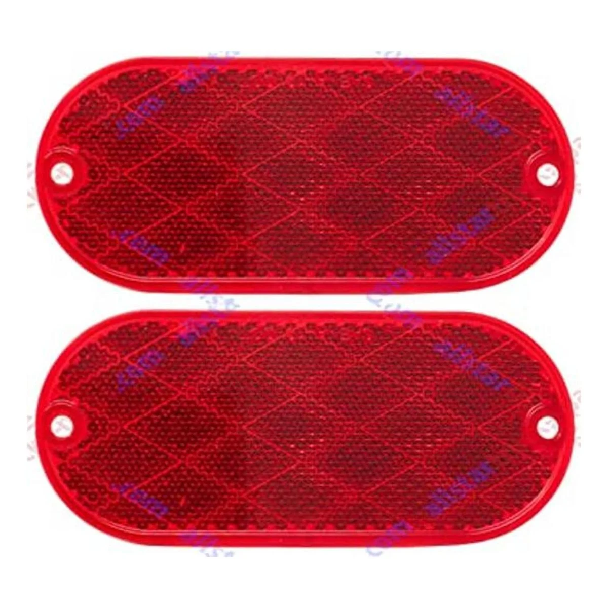 Tamaño total de cada reflector de 4 3/8 x 2 x 1/4 pulgadas de grosor ovalado.
