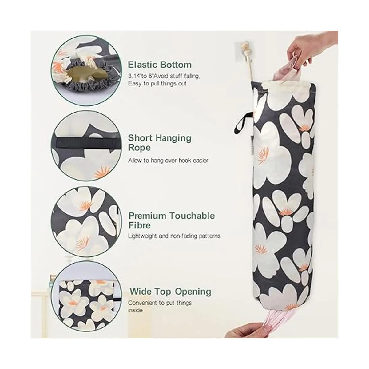 Diseño único personalizado: colores brillantes y patrones de flores simples en nuestros soportes de plástico para bolsas de comestibles los hacen perfectos para colgar en cualquier habitación. Puedes encontrar y acceder fácilmente a pequeñas bolsas de plástico para tus necesidades, un diseño de cierre de cordón de bloqueo con nuestro dispensador de bolsas de plástico puede evitar el derrame de artículos. Además, nuestra bolsa de almacenamiento está hecha con un diseño de apertura elástica en la parte inferior, por lo que puedes sacar fácilmente una bolsa a tu comodidad