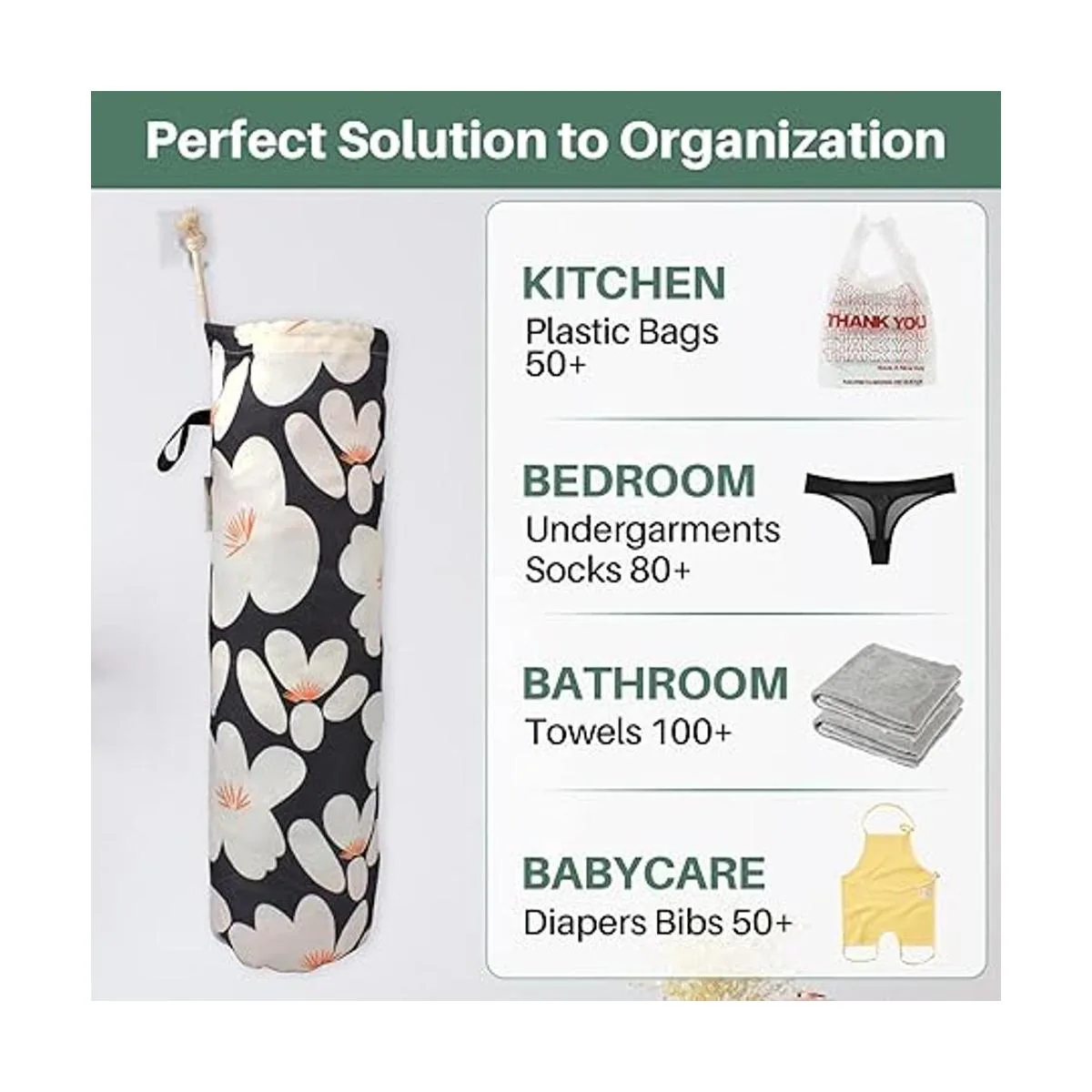 Hecho de alta calidad: estas bolsas de plástico están hechas de material de poliéster transpirable que no solo es perfecto para el soporte de bolsas de plástico, sino también resistente para otros artículos como verduras, pañales, rollos de papel higiénico, soporte para bolsas de papel, guantes o calcetines. Nuestro dispensador de bolsas de plástico para bolsas de comestibles sería una gran adición a una lavandería o guardería, especialmente porque son multifuncionales y pueden contener algo más que bolsas de comestibles
