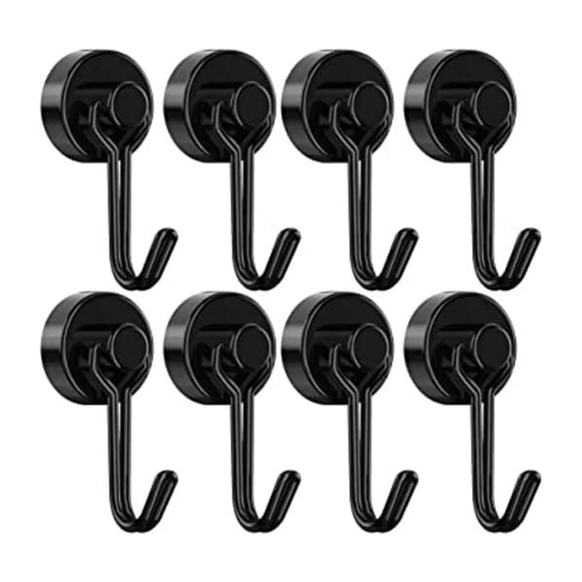 Tohoer Ganchos magnéticos, gancho magnético de neodimio resistente de 30 libras con resistente al óxido para colgar en interiores y exteriores, refrigerador, parrilla, cocina, soporte para llaves, color negro, paquete de 8