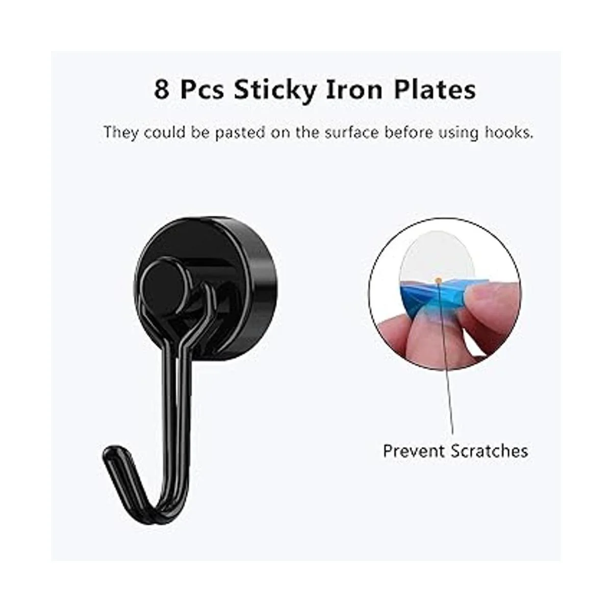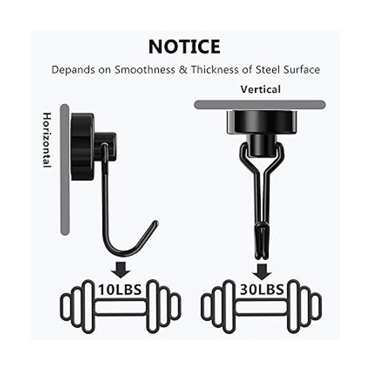Ganchos magnéticos fuertes: estos ganchos magnéticos hechos de imanes de neodimio ofrecen más de 30 libras de fuerza atractiva en la aplicación horizontal, reducen a casi 10 libras si se utilizan verticalmente.