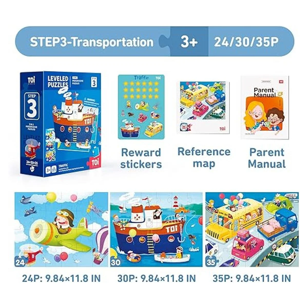 TOI Rompecabezas nivelados para niños de 3 años en adelante, rompecabezas de aprendizaje preescolar, juego educativo de piezas grandes para niños y niñas, paso 3 de educación clásica
