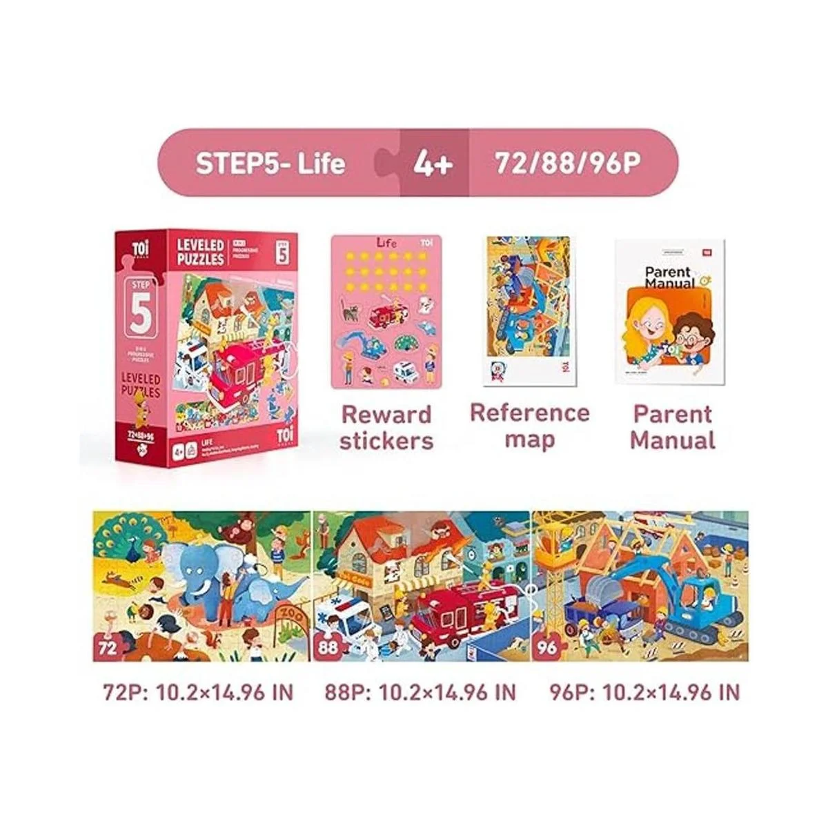 TOI Rompecabezas nivelados para niños de 4 años en adelante, rompecabezas de aprendizaje preescolar, juego educativo de piezas grandes para niños y niñas, paso 5 de educación clásica