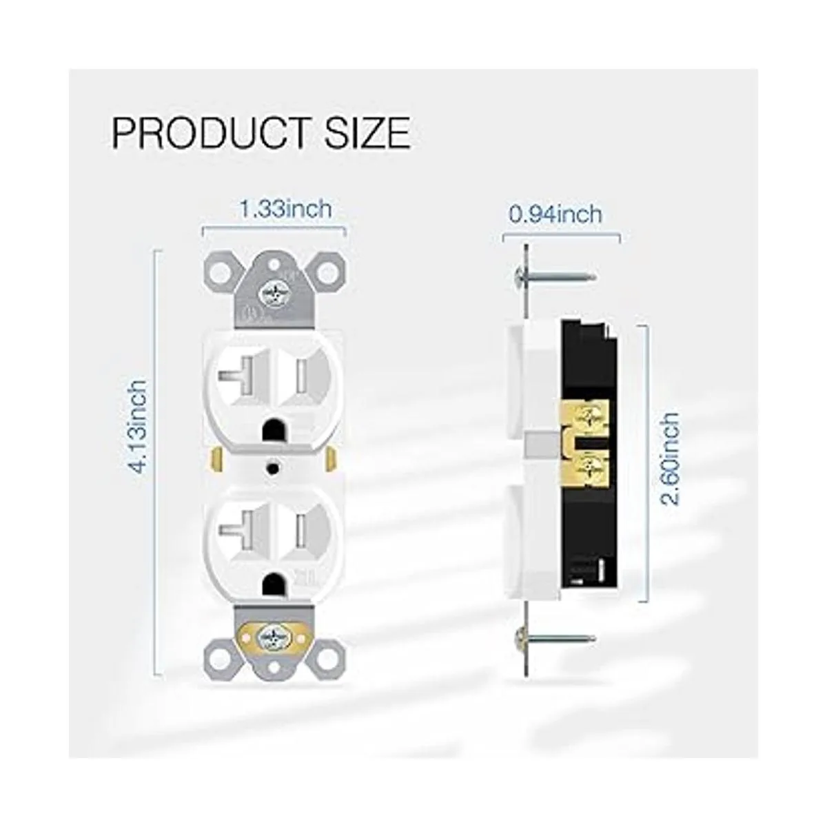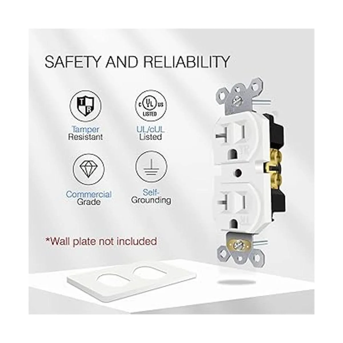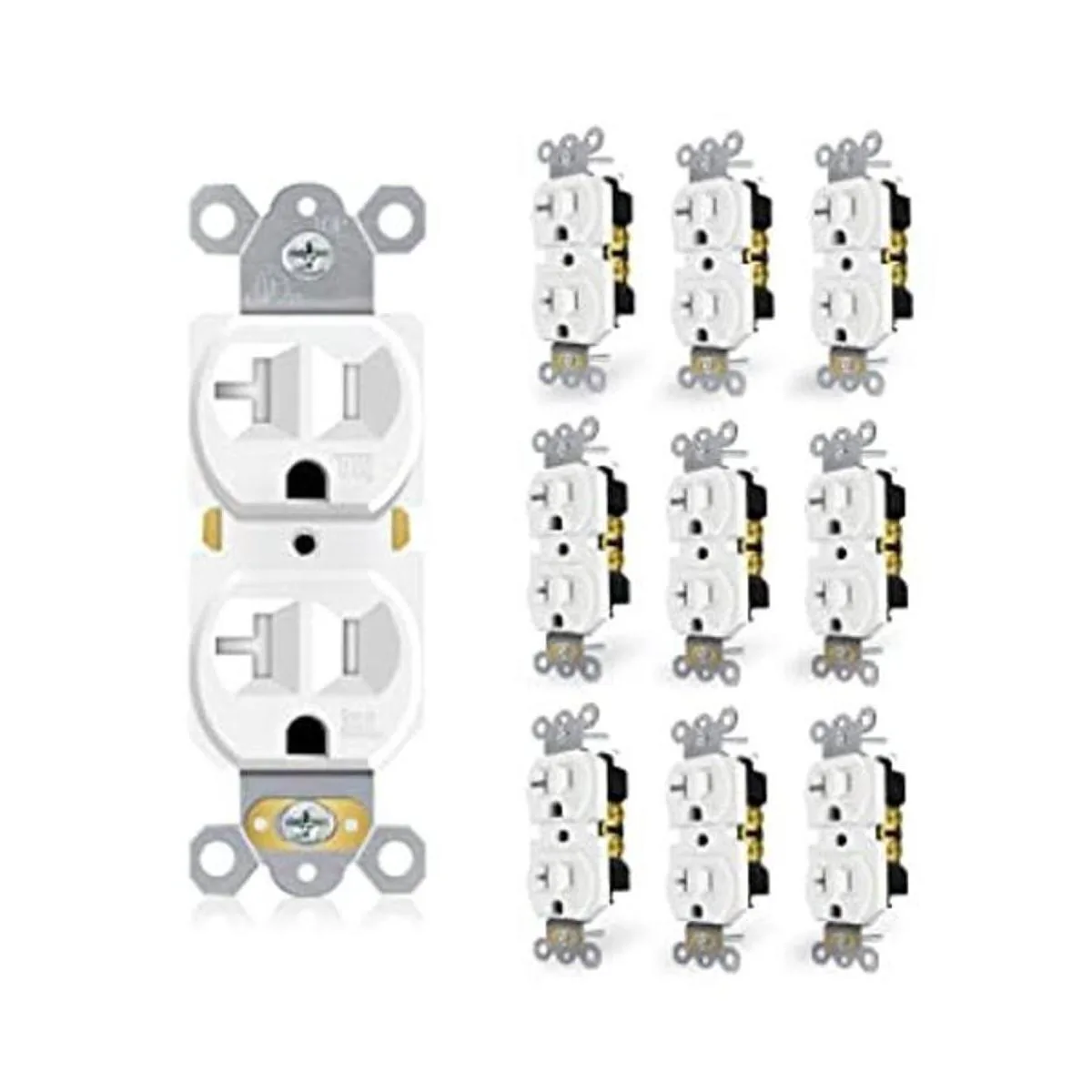 Toma eléctrica de receptáculo dúplex, 20A estándar de grado residencial resistente a manipulaciones para pared, 2 polos 3 cables, autoconexión a tierra, a prueba de niños, certificación UL, blanco, paquete de 10