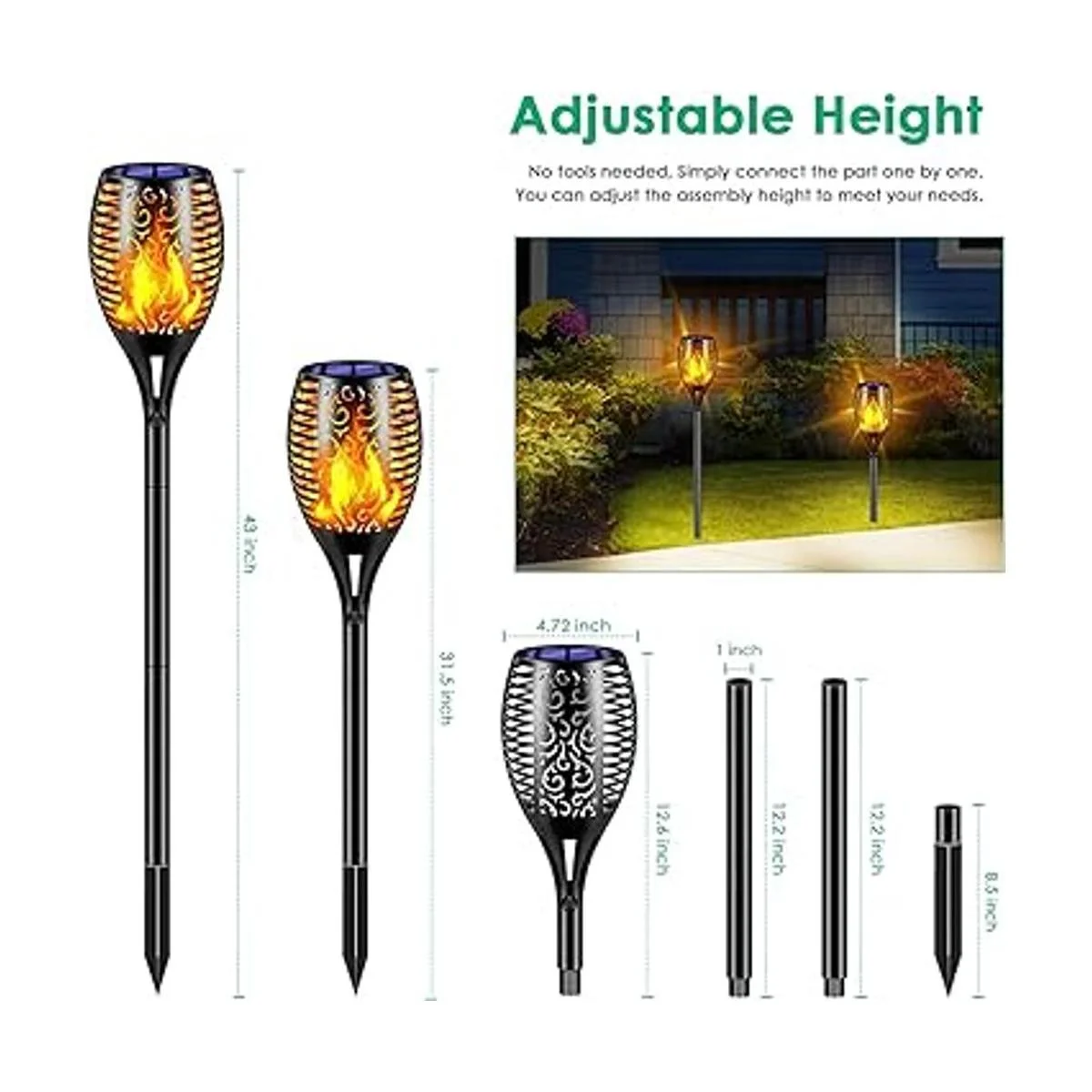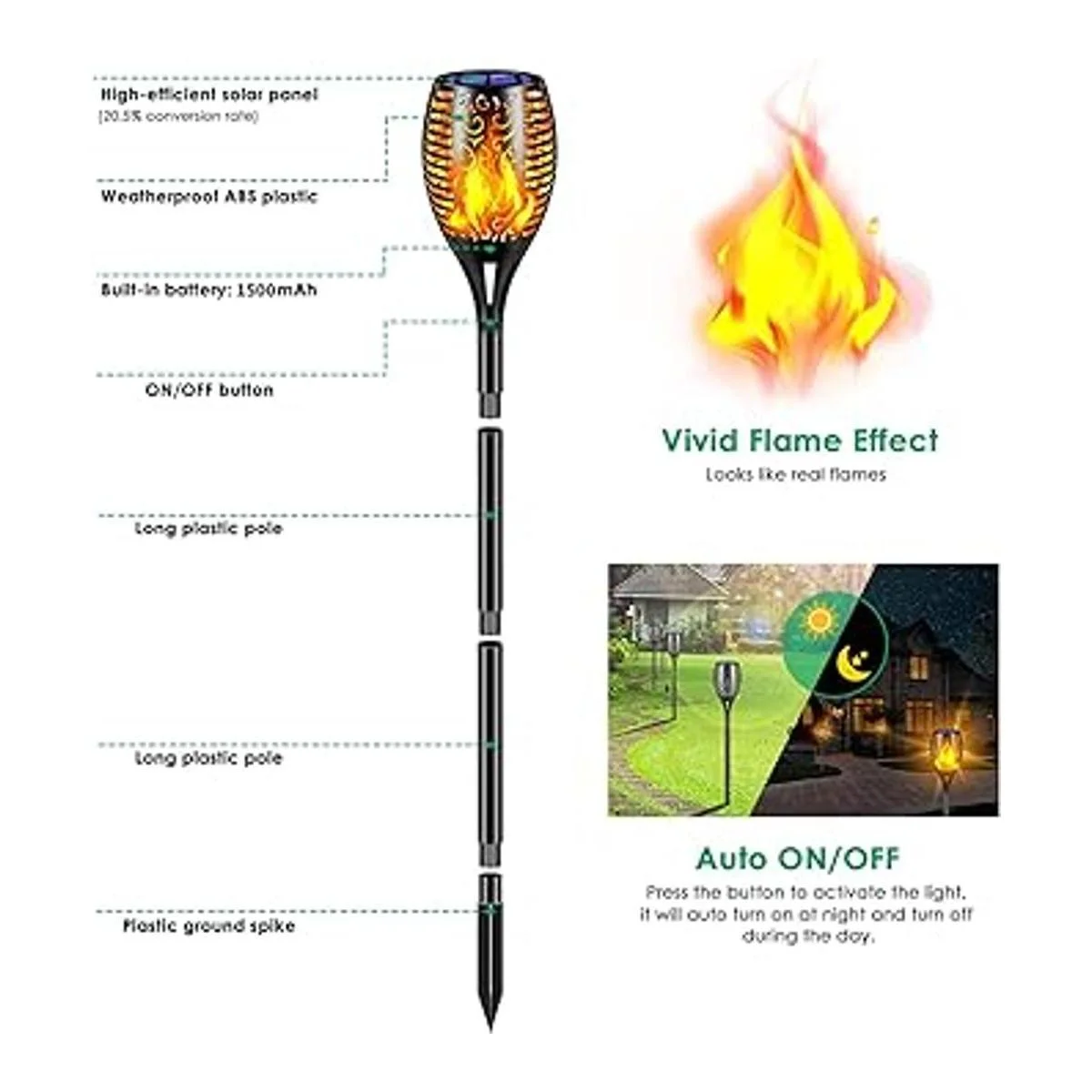 Hermosas llamas bailantes: con un bonito diseño de llamas parpadeantes, efecto de llamas realistas, nuestras luces solares de antorcha darán un ambiente encantador; estas luces solares para exteriores son hermosas y atractivas, que son la iluminación decorativa al aire libre para tu jardín, camino, entrada, patio, Navidad, Halloween, etc.