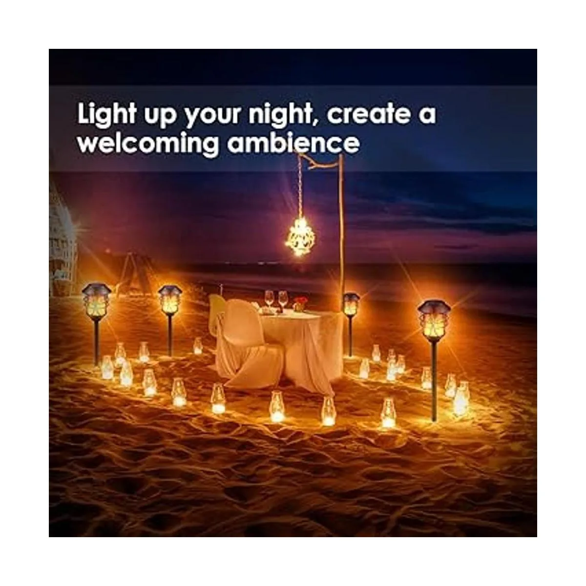 Diseño realista de llamas: el increíble diseño de llamas parpadeantes, junto con su luz cálida de color amarillo, hace que parezca llamas reales. Ilumina tu jardín, camino, puerta frontal o patio, creando un ambiente acogedor.
