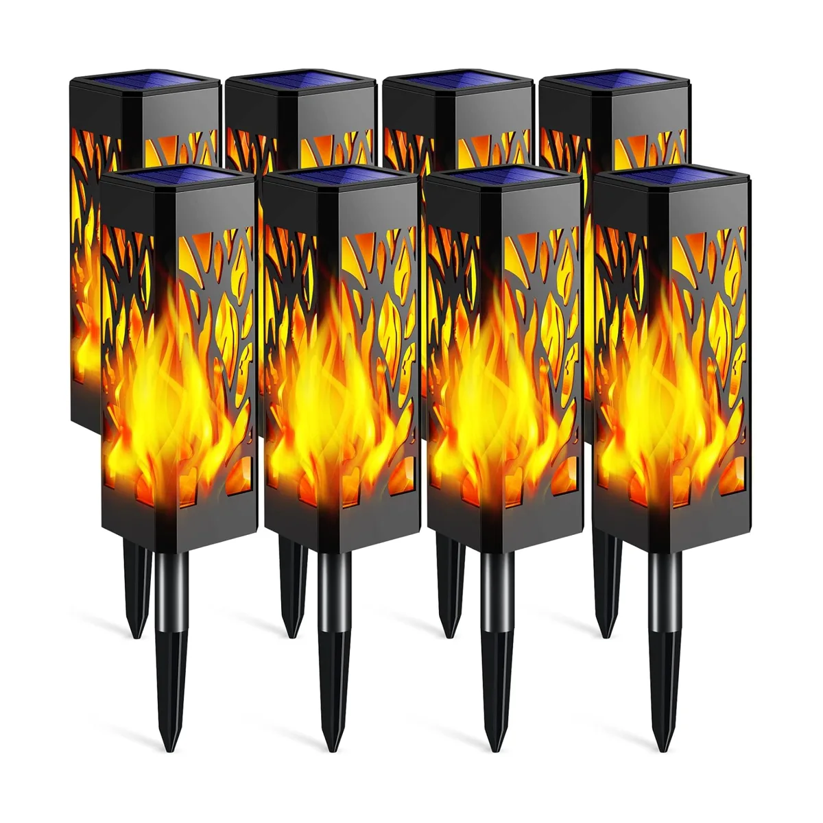 TomCare Luces solares parpadeantes para exteriores, luces solares para caminos, luces solares decorativas de jardín, impermeables, luces de llama al aire libre, iluminación de paisaje para patio, camino, pasarela, paquete de 6
