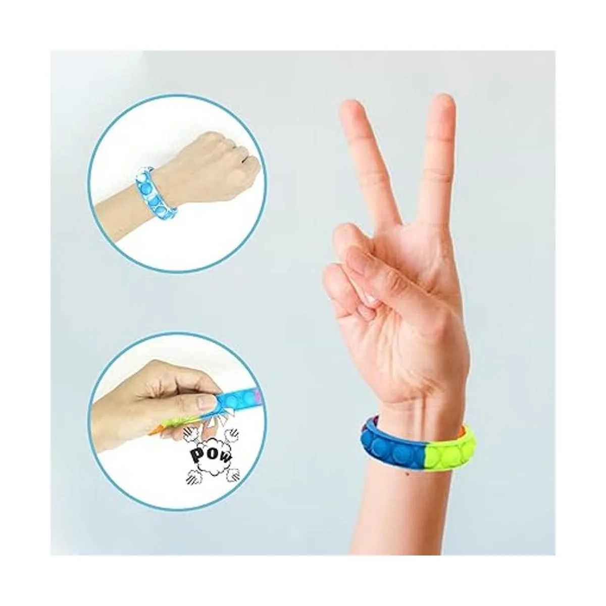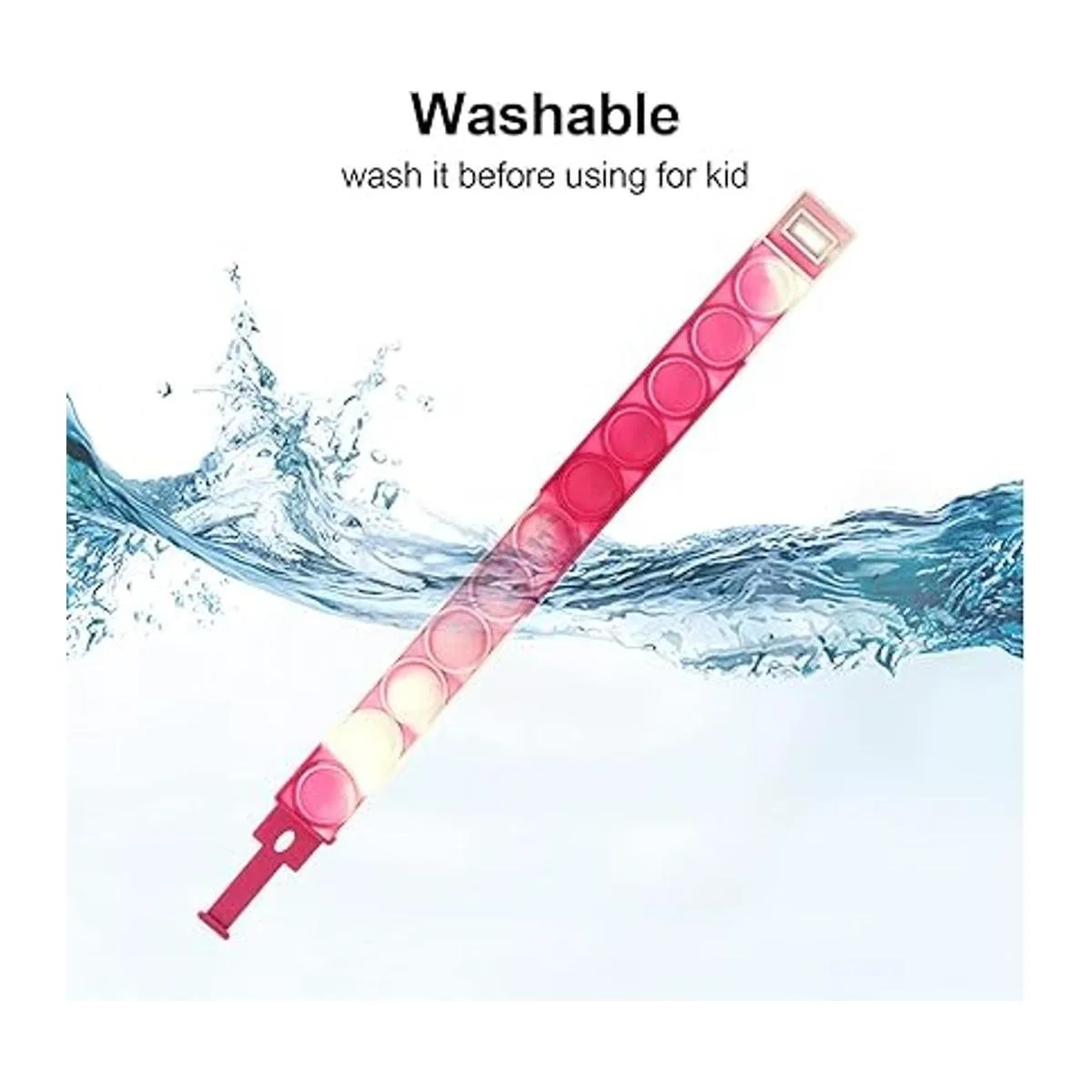 Materiales seguros de alta calidad: nuestros juguetes de pulsera de silicona están fabricados con materiales de silicona de alta calidad. La superficie es lisa, el material es suave y fácil de limpiar, cómodo de llevar, seguro e insípido, uso ilimitado, elástico, resistente al desgaste, se puede tirar en cualquier momento sin deformarse, impermeable, se puede limpiar y es seguro para los niños.