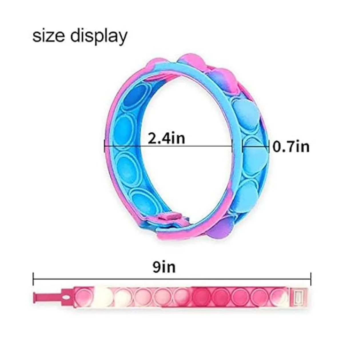Pulsera de descompresión: colorido y popular juguete de pulsera de burbujas para presionar, hará un sonido pop cuando se presiona. Este popular juguete de pulsera de descompresión es ruidoso por un lado, y silencioso y limpio por el otro. El sonido se produce eficazmente al presionar las burbujas. Ayudan a restaurar el estado de ánimo y relajar el cerebro de niños y adultos con ansiedad, estrés y autismo.