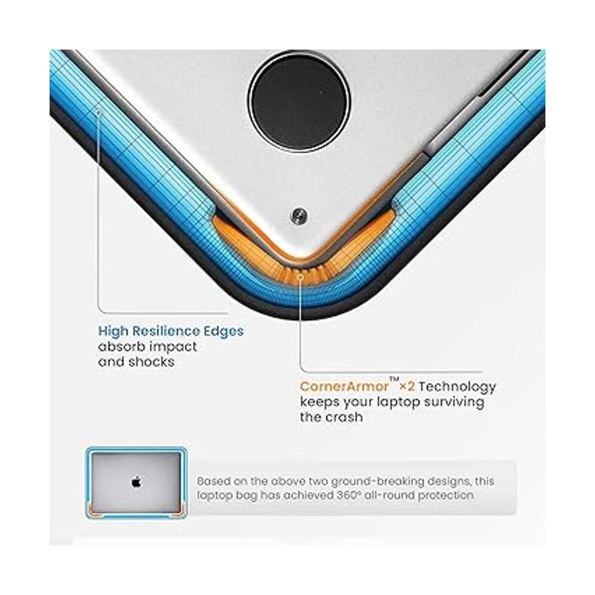 CornerArmor Technology: tomtoc laptop case features two rubber CornerArmors at the bottom corners, which can protect your device from unexpected drops and bumps and keep your device surviving the crash, just like the car airbag