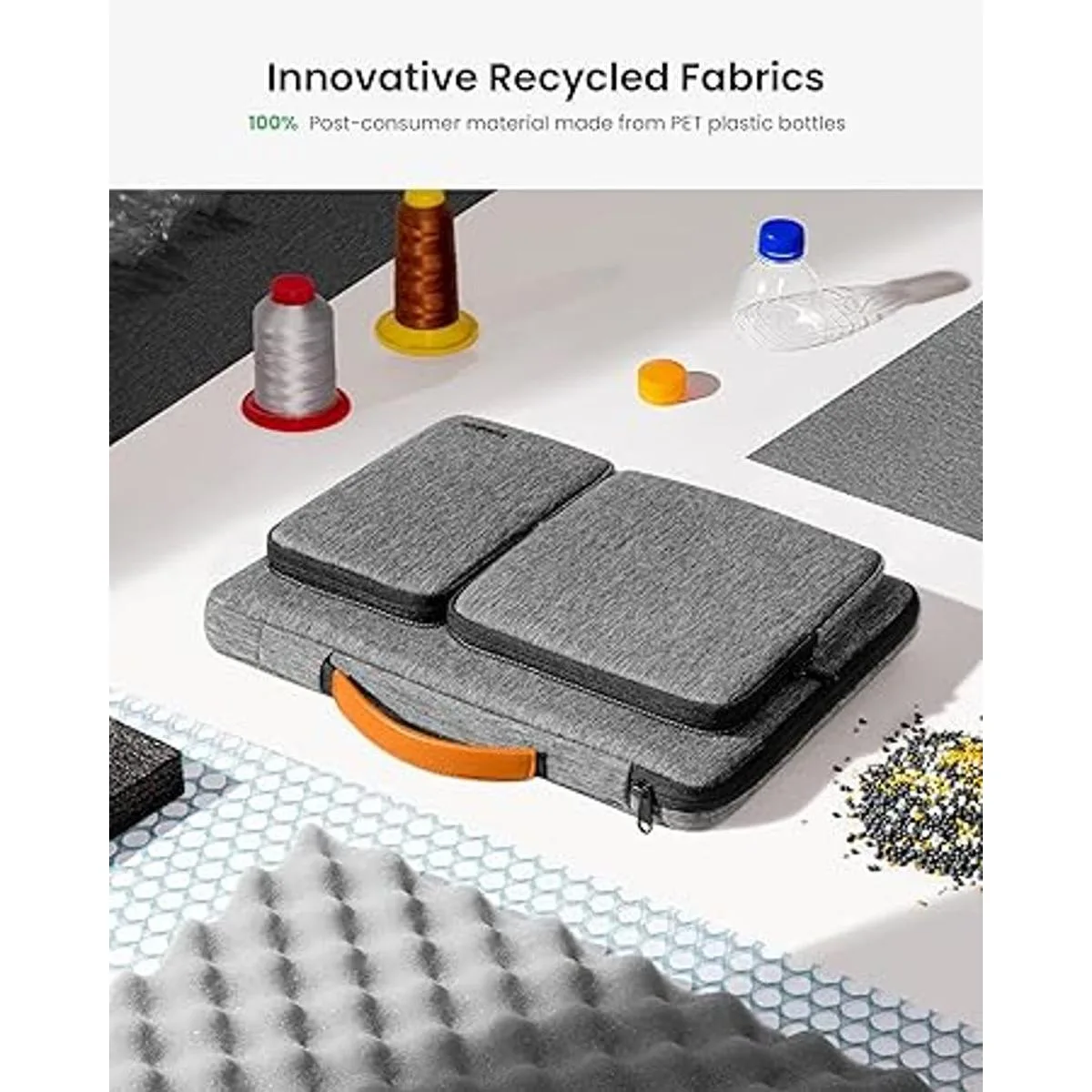 La calidad cumple con el rendimiento: cremalleras YKK de alta calidad, todos los puntos de tensión reforzados y el sofisticado diseño interline acolchado y forro polar cumplen o superan tus expectativas de calidad de bolsa de portátil. Asas de piel sintética y diseño ligero que te proporcionan la máxima comodidad. Los tejidos reciclados ecológicos nos permiten dar una protección completa a tu computadora mientras que también protegen nuestro medio ambiente.