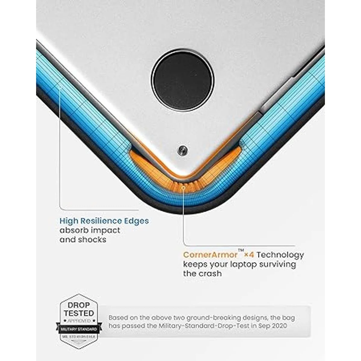 Protección de grado militar: para combatir las situaciones más difíciles: desde caídas hasta golpes hasta vibraciones, Tomtoc propuso el concepto de protección 360 y diseñó la funda para portátil con tecnología CornerArmor y bordes de alta resistencia y acolchado suave de alta densidad. Pasó la prueba de caída estándar militar mientras que también mantiene un diseño elegante